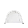 Made of strong, heavy-duty commercial grade polyethylene (PE) fabric that is triple layered to prevent it from tearing and treated to be resistant to fire, oil and chemicals. Tapered fabric front roll-up door is about 8' wide on the bottom and 6-½' wide at the top, measuring approx. 6-¼' high for easy drive-through access.