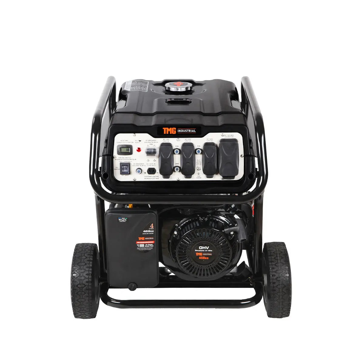 The TMG Industrial 12000GE generator provides 12,000 watts of starting power and 9,000 watts of running power. It's ideal for job sites or as backup power for your home during emergencies. One-touch electric start makes this generator easy to start in the dark during a power outage, and a 7-gallon all-steel fuel tank with a built-in fuel gauge means an average run time of 7 hours at 50% load with a quiet operating volume of 78 dBA.