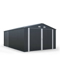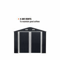 Air vents help to maintain good airflow no matter the season, as well as a sloped gable roof to help prevent snow and water build up on those cloudy winter days. L-shape brackets with sleeve anchor bolts installation makes this structure easy to install on any solid wood platform or concrete slab. Immediately increase the value of your property by adding to it this metal shed which is only a fraction of the cost compared to building a similarly sized structure.