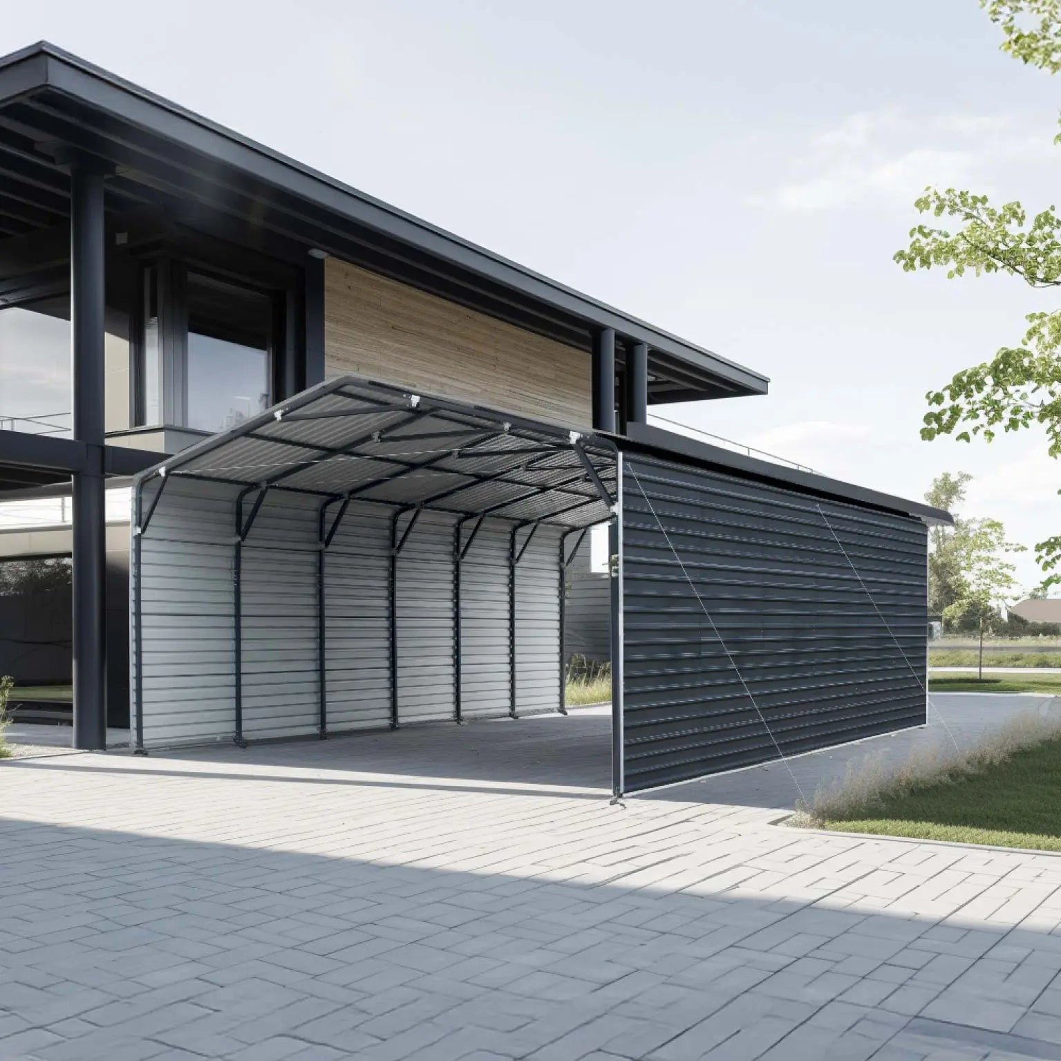 The TMG-MSC2030F Metal Shed Carport with Enclosed Sidewalls is your new trustworthy outdoor covered vehicle storage solution. Standalone foot plates that anchor individually into the ground provide superior support and overall structural integrity. 10' enclosed sidewalls accommodate the storage of your pickup, RV, boat, 4-wheelers or other farming equipment and offer all season protection and dependability.