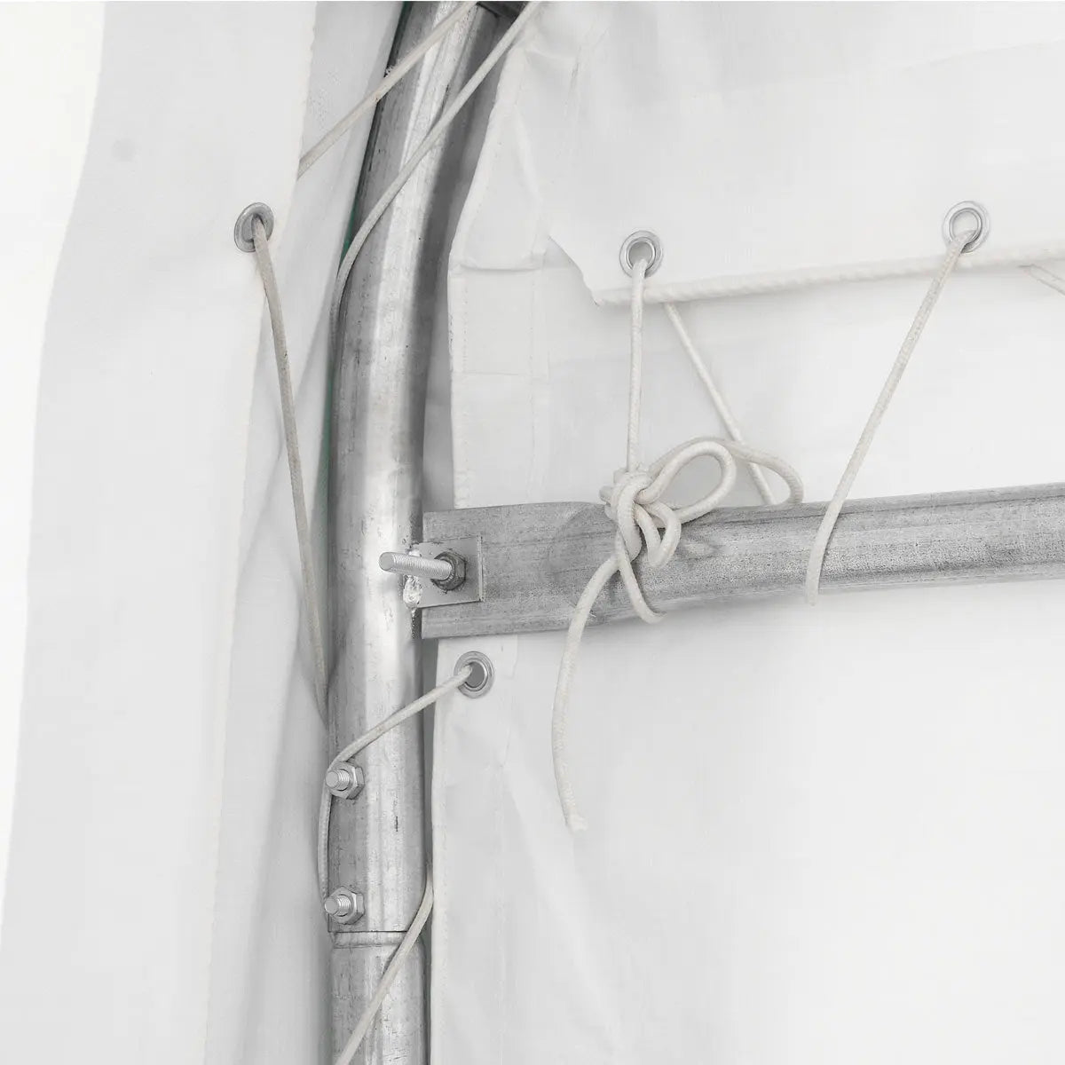 10' of entry space provides a huge opening to allow workflow coming in and out. Use this shelter as storage for tools, large equipment, ongoing jobs, maintenance and mechanical labour. The PVC fabric is very tough and comes in a vibrant white colour that reflects UV rays but allows light to permeate through. The natural illuminating quality will help you save on utility costs and provide all day use even when it's cloudy.