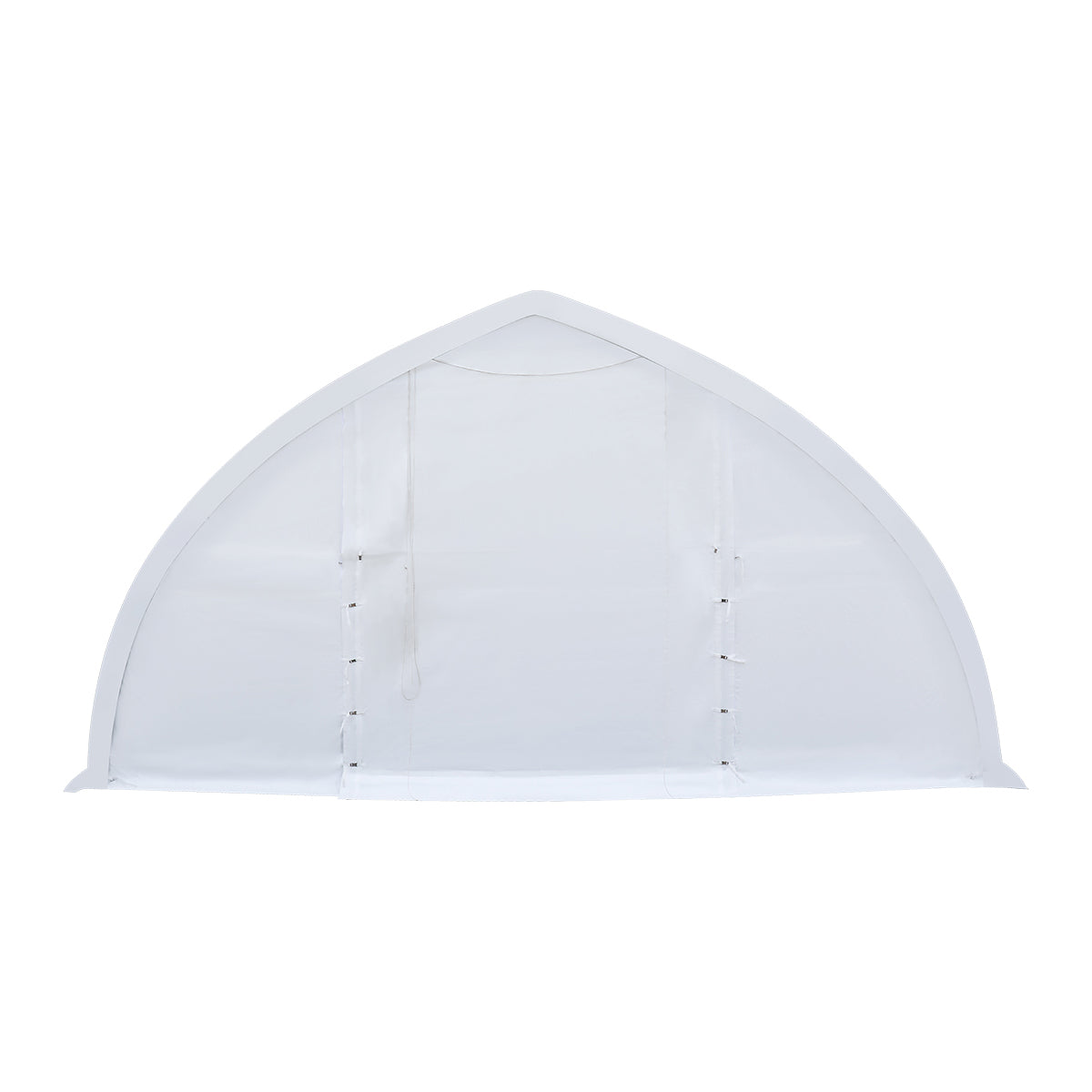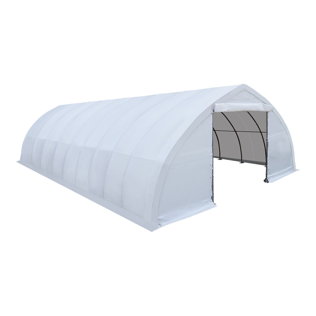 Get commercial-grade, heavy-duty storage with the TMG-ST3042V PVC Fabric Peak Ceiling Storage Shelter. This easy-to-assemble shelter is built for industrial and agricultural applications, providing approximately 1200 square feet of covered space, ideal for farms, construction sites, or equipment dealerships.