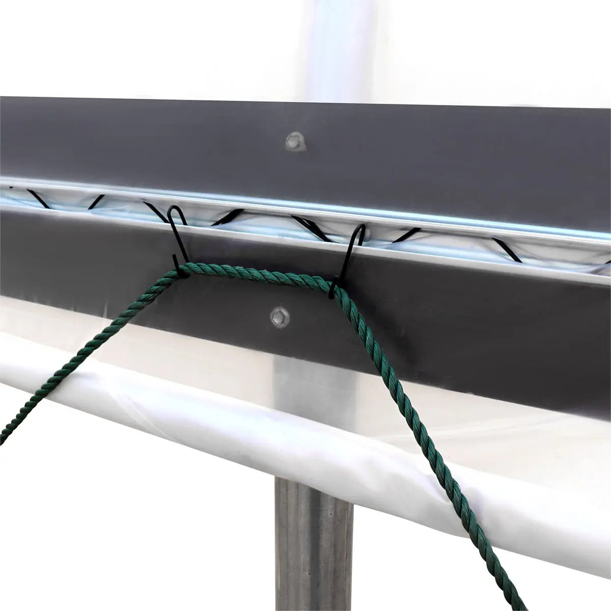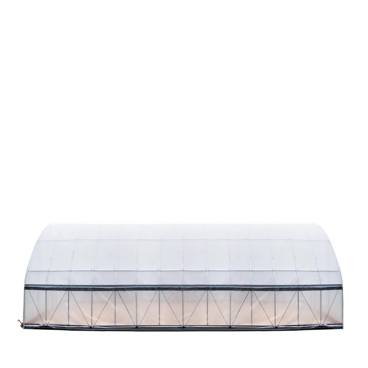 Included wiggle wires make securing the plastic film overtop of the frame and into the aluminum lock channels simple and easy to do. Your plants will have plenty of room to grow and flourish under the approximately 1800 sq-ft of covered space. Solar energy will seep through from all angles and be stored in the soil and inside the structure for a beautiful, budding ecosystem.