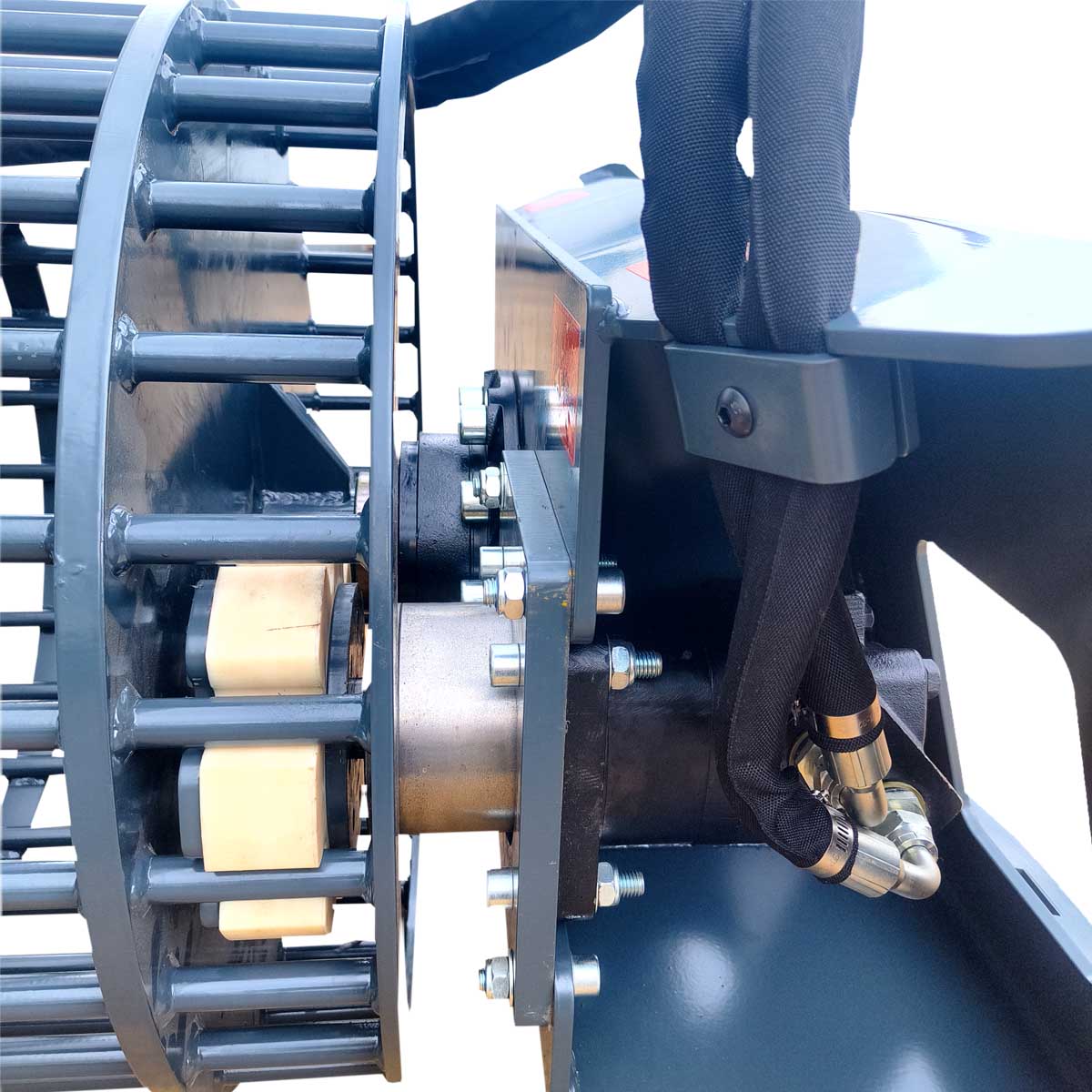 The TMG-SRP32 Skid-Steer Rotary Rock Picker takes the hard work out of field clearing. Its 30″ (762 mm) caged barrel and 39″ (990 mm) depth scoop large amounts of stones and debris in each pass, while 2½″ (64 mm) bar spacing allows soil to fall through—preserving valuable topsoil. Powered by a reliable hydraulic motor, this tool fits skid steers of 35–75 HP via its universal quick-attach mount. With a 1,300 lb (590 kg) load capacity, the TMG-SRP32 turns labor-intensive jobs into efficient, smooth operations.