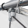 Made of strong, heavy-duty commercial grade polyvinyl chloride (PVC) fabric that is triple layered to prevent tearing and provide a long-lasting shelter covering for many years to come. This fabric is a natural flame retardant, commonly used in large commercial structures such as sports stadiums and event halls. The first 7 ft of each side is a straight wall which amplifies storage space along the edges. 90 roof purlins also run throughout the whole interior of the structure which reinforces it for exceptional durability and stability.