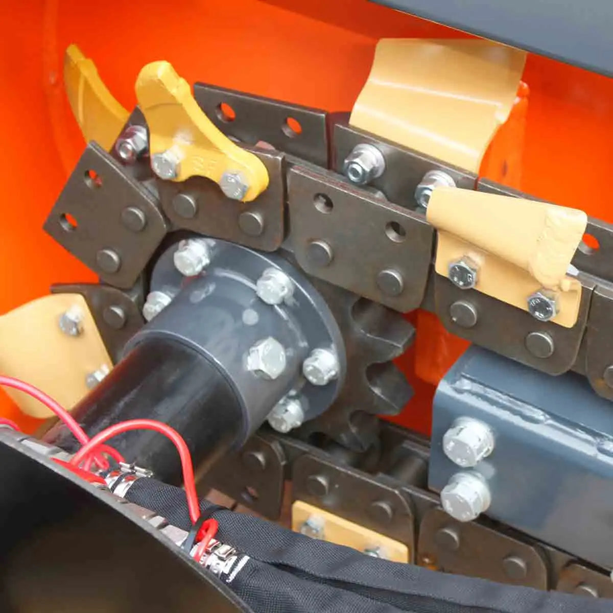 A heavy-duty boom and crumber setup assembly helps clear dirt out and away from the 6" trenching width, and an 19" auger discharge keeps it from falling back into the trench. These features combine to produce a neat and orderly ground finish that avoids unnecessary digging and unseemly cut lines on customer properties.