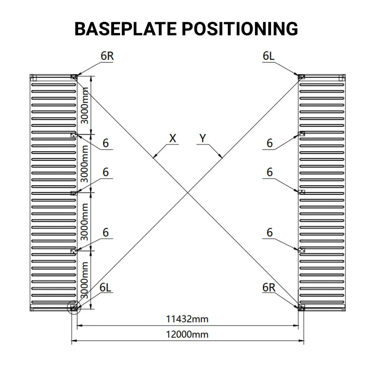 Roughly 40' of entry and exit space on both endwalls provides a huge opening to allow workflow coming in and out. This structure is designed for installation on the outer or inner edges of your containers. For harsh weather areas or places with insufficient space, it's recommended to use the outer edges of the container (so it is fully enclosed) to prevent snow buildup outside the structure.