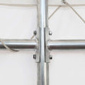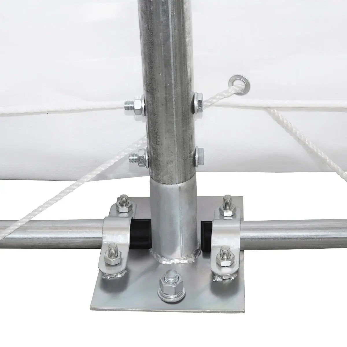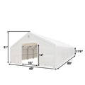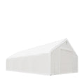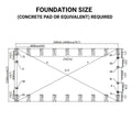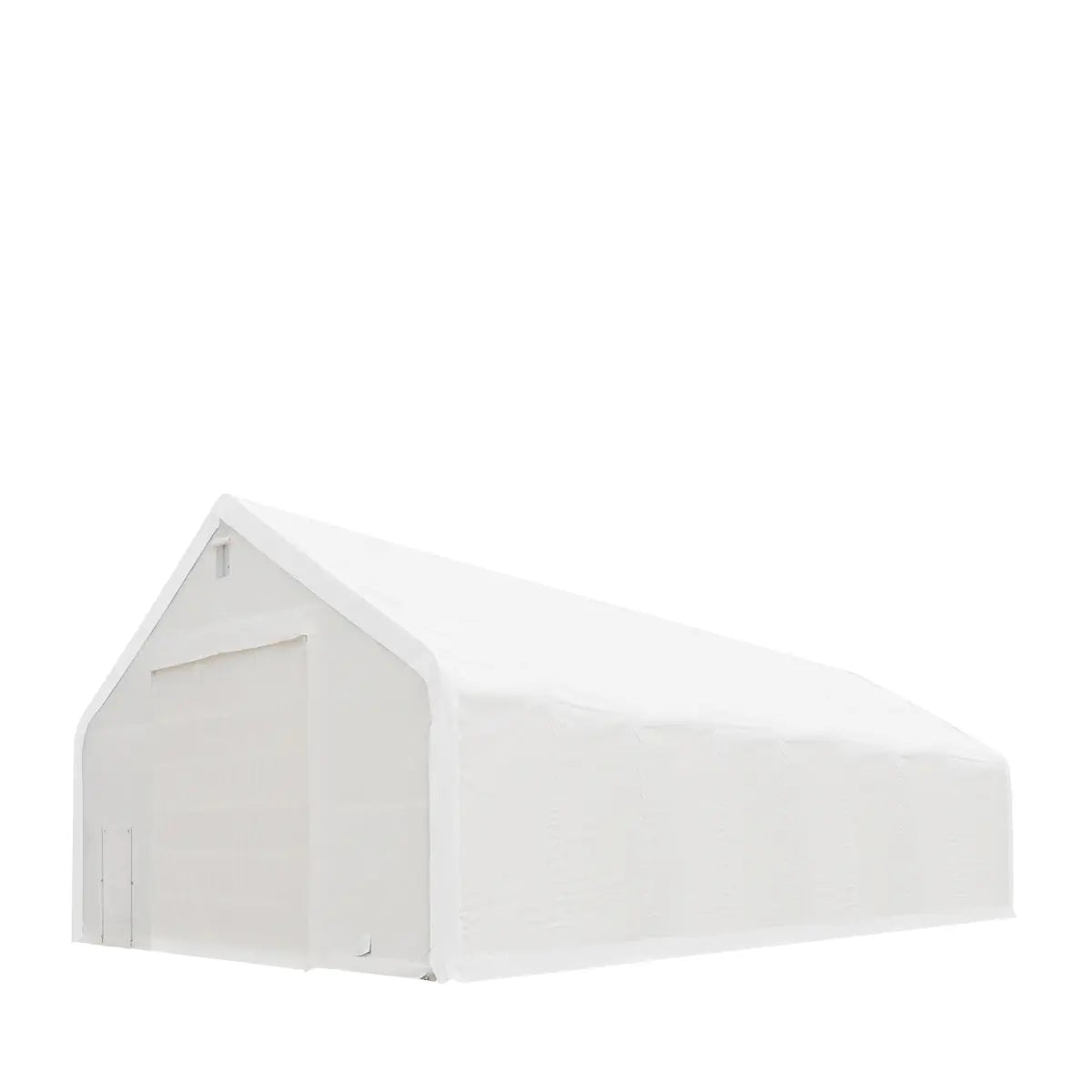 Made of strong, heavy-duty commercial grade polyvinyl chloride (PVC) fabric that is triple layered to prevent tearing and provide a long-lasting shelter covering for many years to come. This fabric is a natural flame retardant, commonly used in large commercial structures such as sports stadiums and event halls. The first 12 ft of each side is a straight wall which amplifies storage space along the edges. Double trusses also run throughout the whole interior of the structure which reinforces it for exceptional durability and stability.