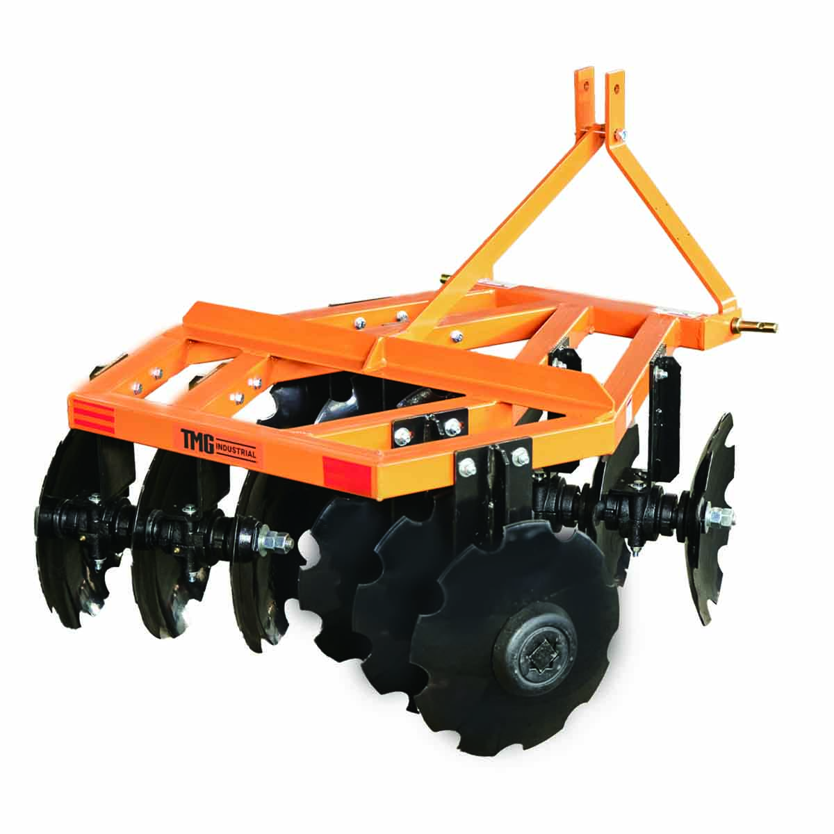 The TMG-TDH04 Notched Disc Harrow is the perfect tool for efficient and effective soil preparation. Designed for 3-point hitch Cat 1 tractors with 20-30 HP, it offers a 48" cutting width and (12) 16" notched discs.