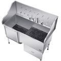61" Stainless Steel Dog Grooming Bath Tub, Built-in Ramp & Water Filter, Left-Side Faucet Setup, DOBA-DT61L