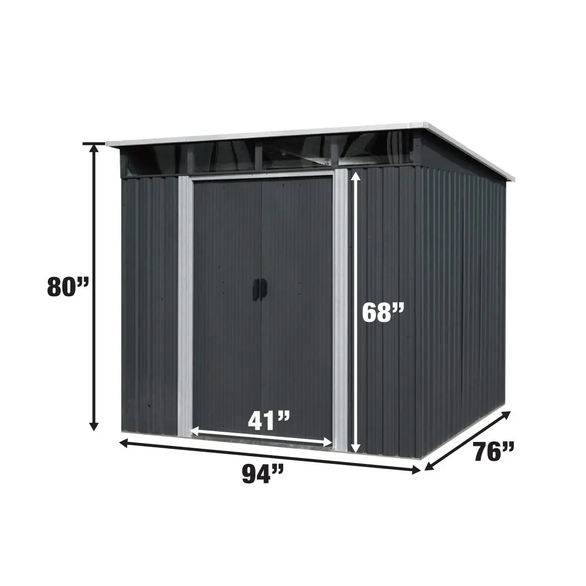 6’ x 8’ Galvanized Metal Pent Shed w/Skylight, 29 GA Corrugated Metal, 80" Peak Ceiling, TMG-MS0608P