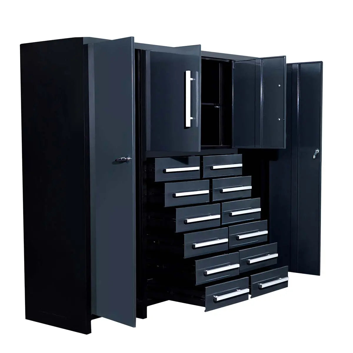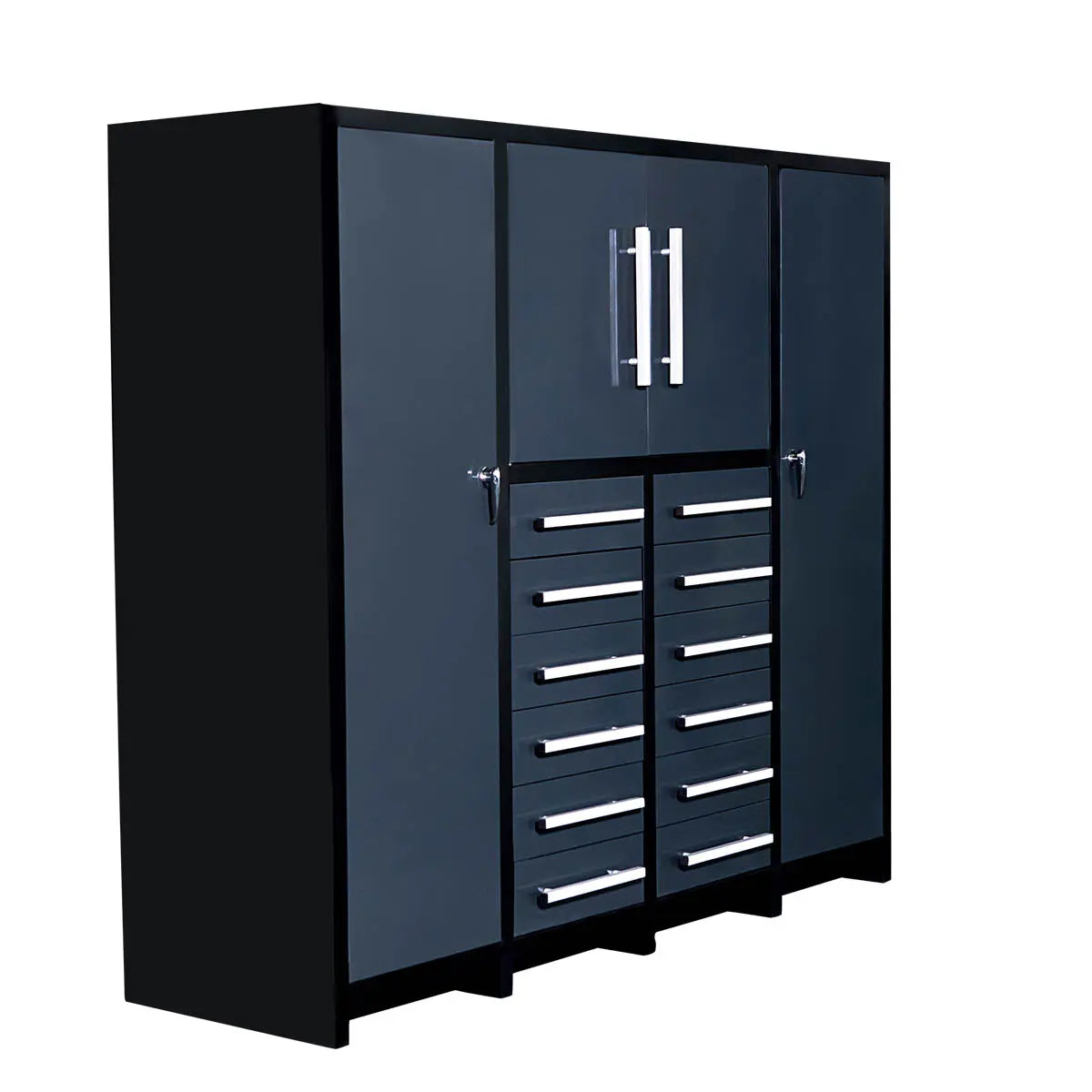 (This product is no longer available for online purchase, please refer to upgrade replacement model SKU: TMG-SC22DS) The TMG Industrial heavy-duty storage chest with 12 drawers and upright storage is a perfect addition to any automotive shop, garage, factory, or warehouse. Standing 68" tall and 80" wide, this storage cabinet has room for tools, welding helmets, shop coveralls, chemicals, and more.