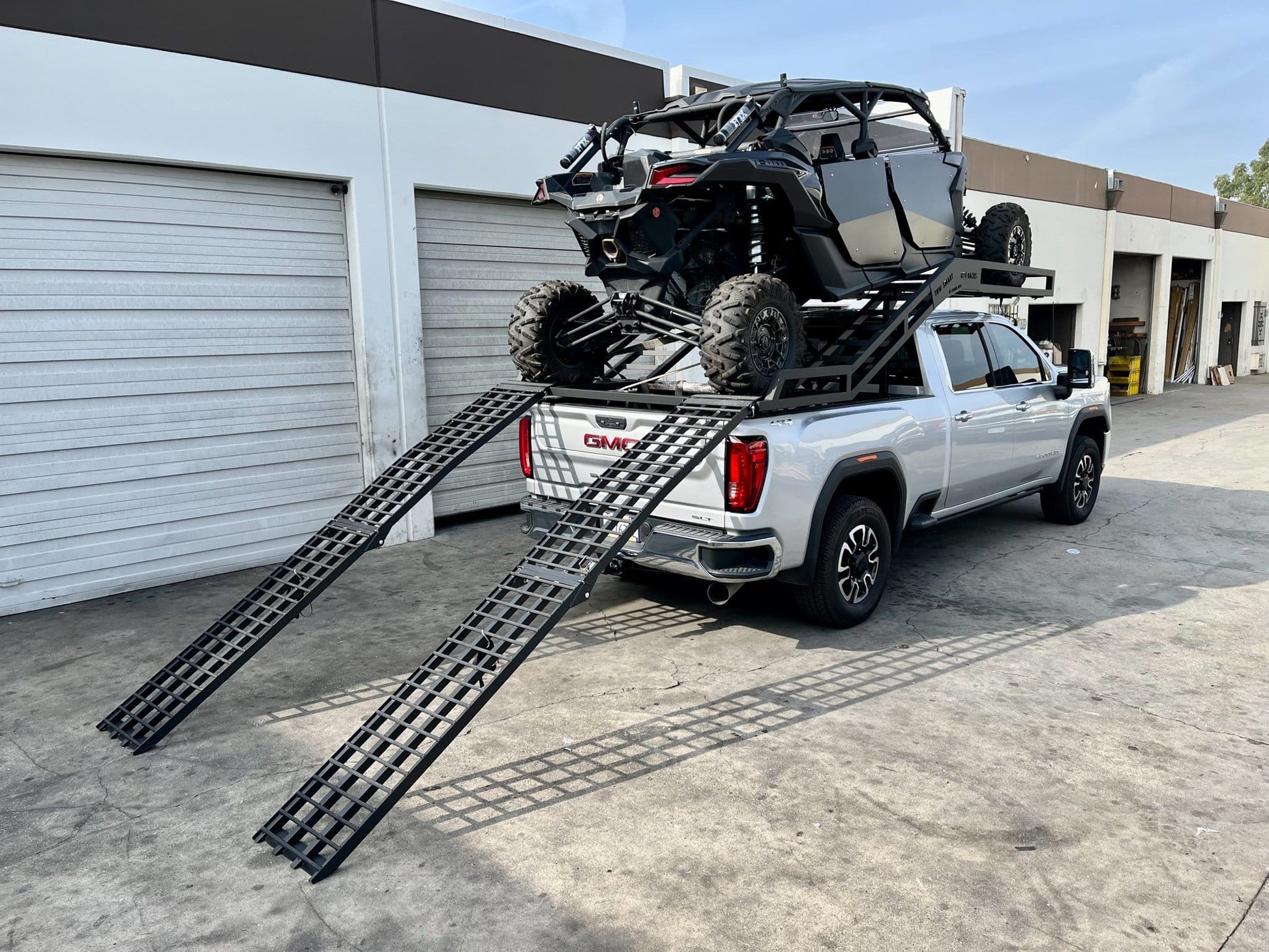 UTV Rack is designed to haul up to 2900lb. UTV deck can be used for 2 Seats and 4 seat side by side. 2 Aluminum Folding Ramps and 4 turnbuckles come standard with every UTV Deck purchase. The truck rack is designed to fit all Major truck models including Chevrolet 2500/3500 Silverado, Dodge Ram 2500/3500 Short box, and Ford f250/F350 and up.