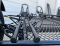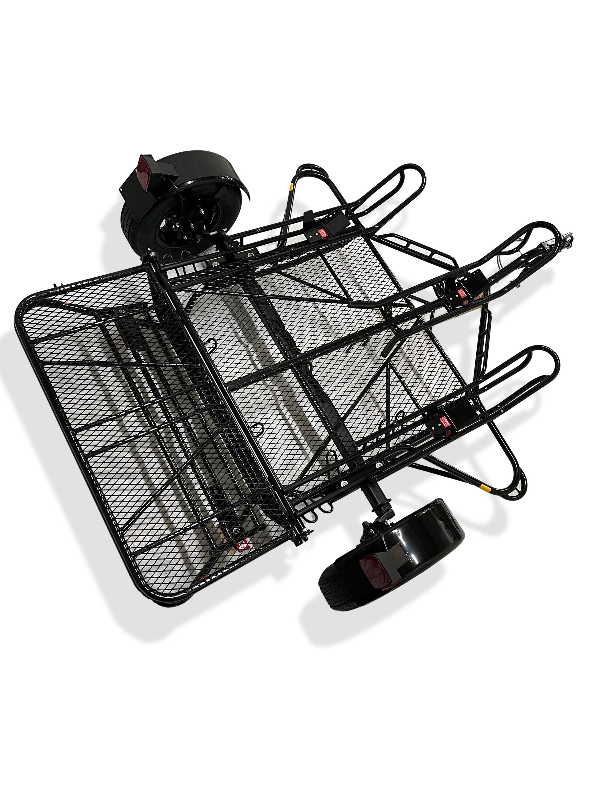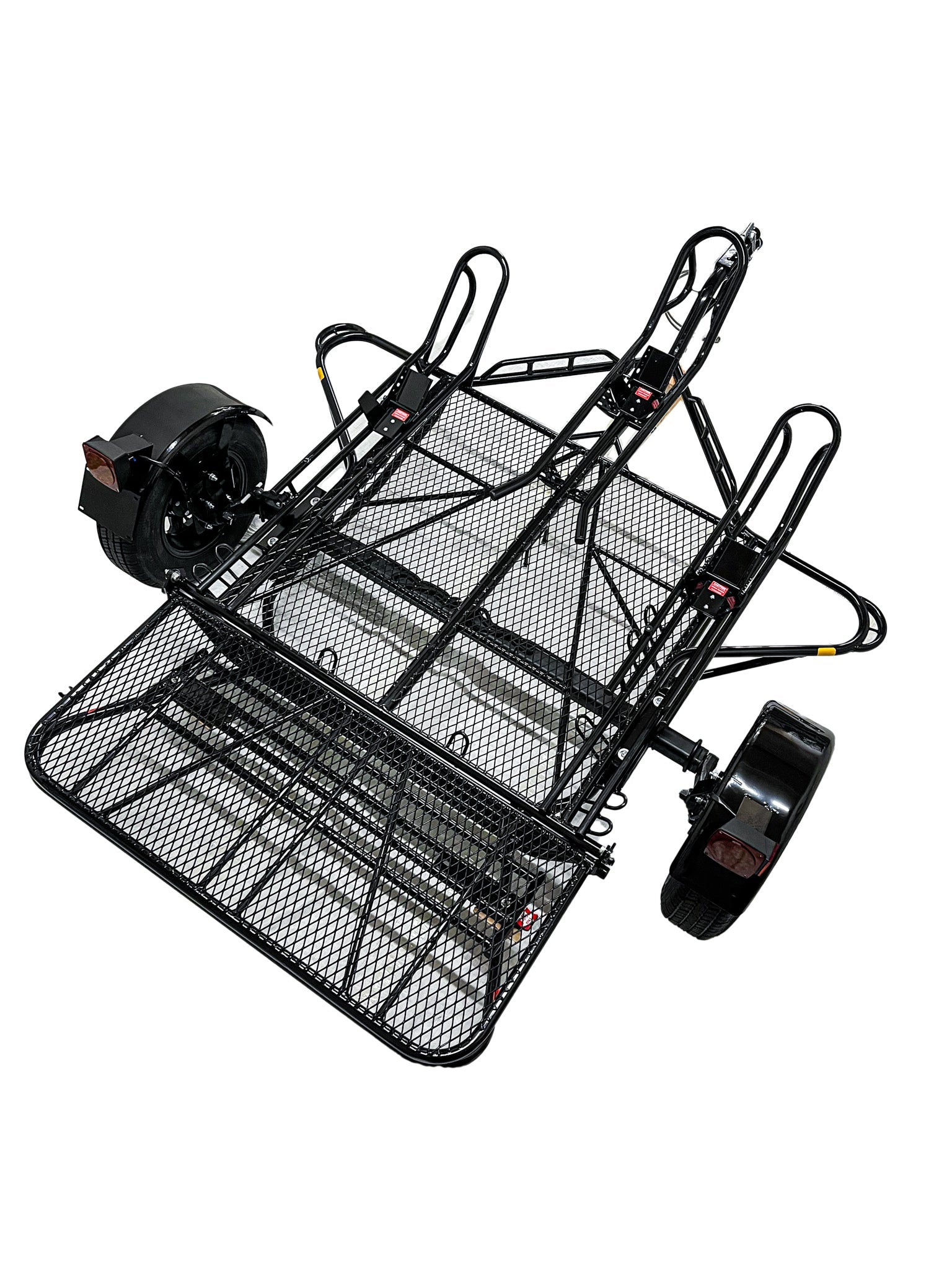 - 3-rail trailer design can accommodate a wide variety of bikes, scooters, and other equipment, as well as many different equipment combinations.