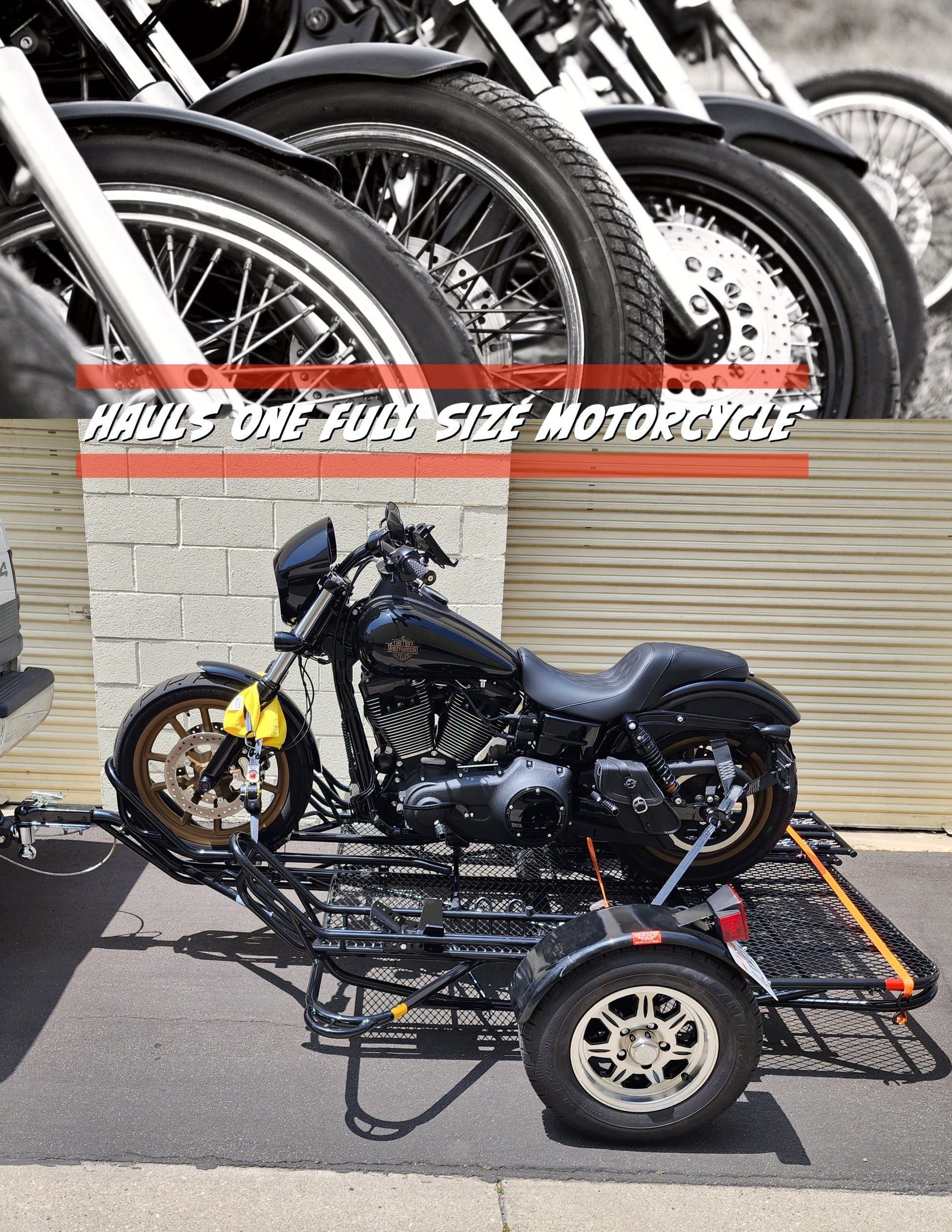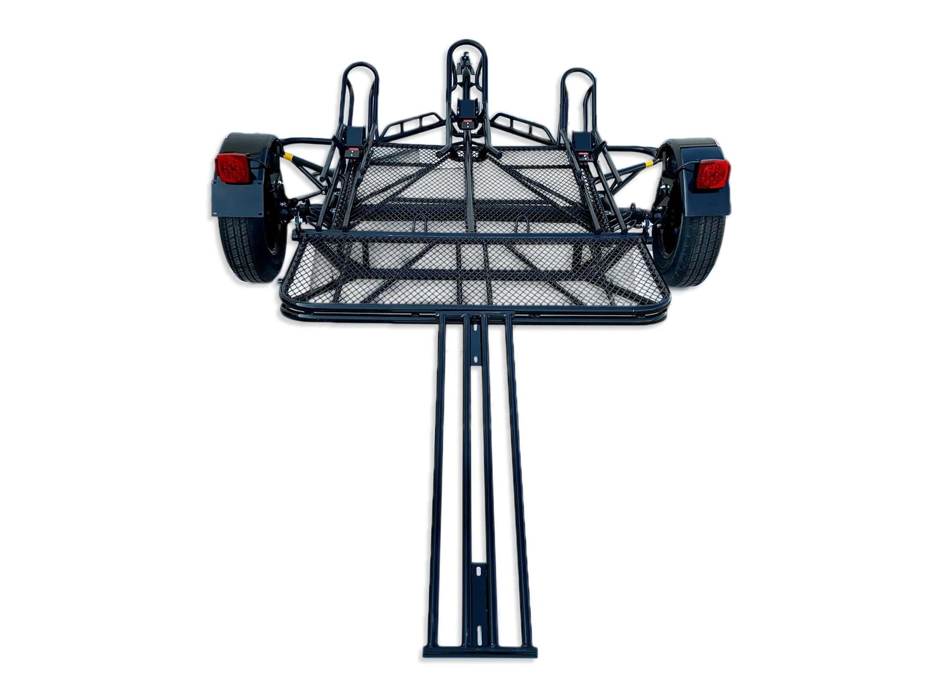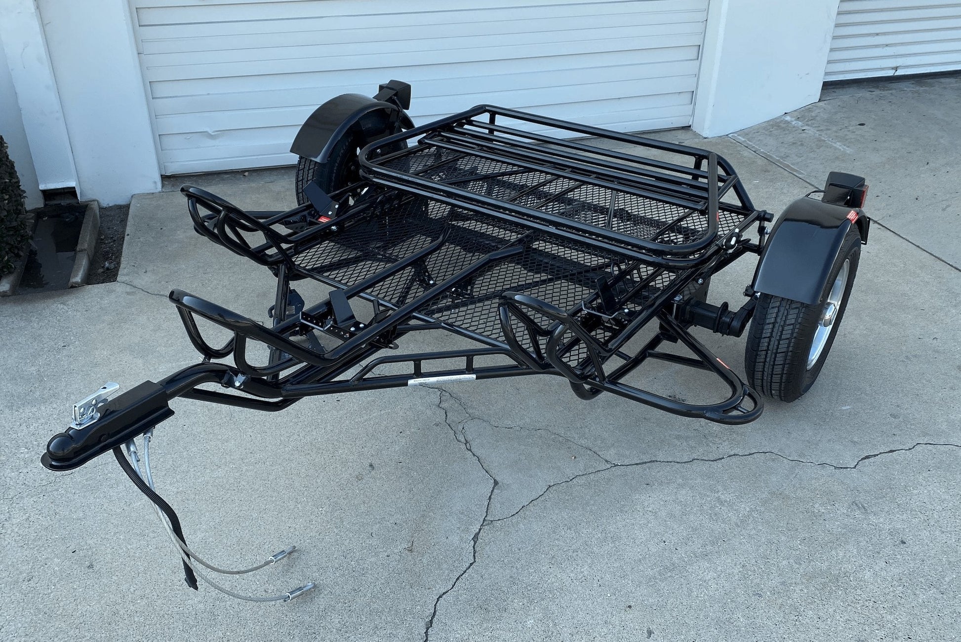 To bike owners of all persuasions, we say: we’re proud to have this multi-use dirt bike trailer for sale at our store since it is fully equipped to haul almost any combination of bikes — including single or double heavy bikes and pleasure cruisers, as well as up to three dirt bikes, adventure bikes, or sport bikes — without much setup or any fuss. Just keep your load under the weight limit and you’ll be good to go! Whether you choose to use our Foldable Dirtbike Trailer as an everyday bike trailer, a sportbike trailer, or a dirt bike trailer, it’ll easily get your gear where you need to go, then stow quickly with a small storage footprint. That way you can spend more time riding and less time looking for someplace to park.