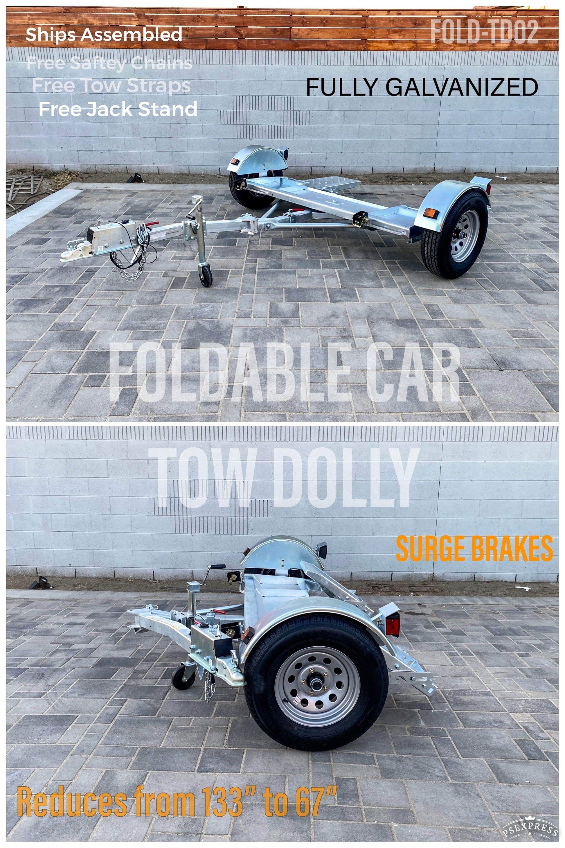 Stow N Go Galvanized Folding Car Tow Dolly – Surge Brakes Included.