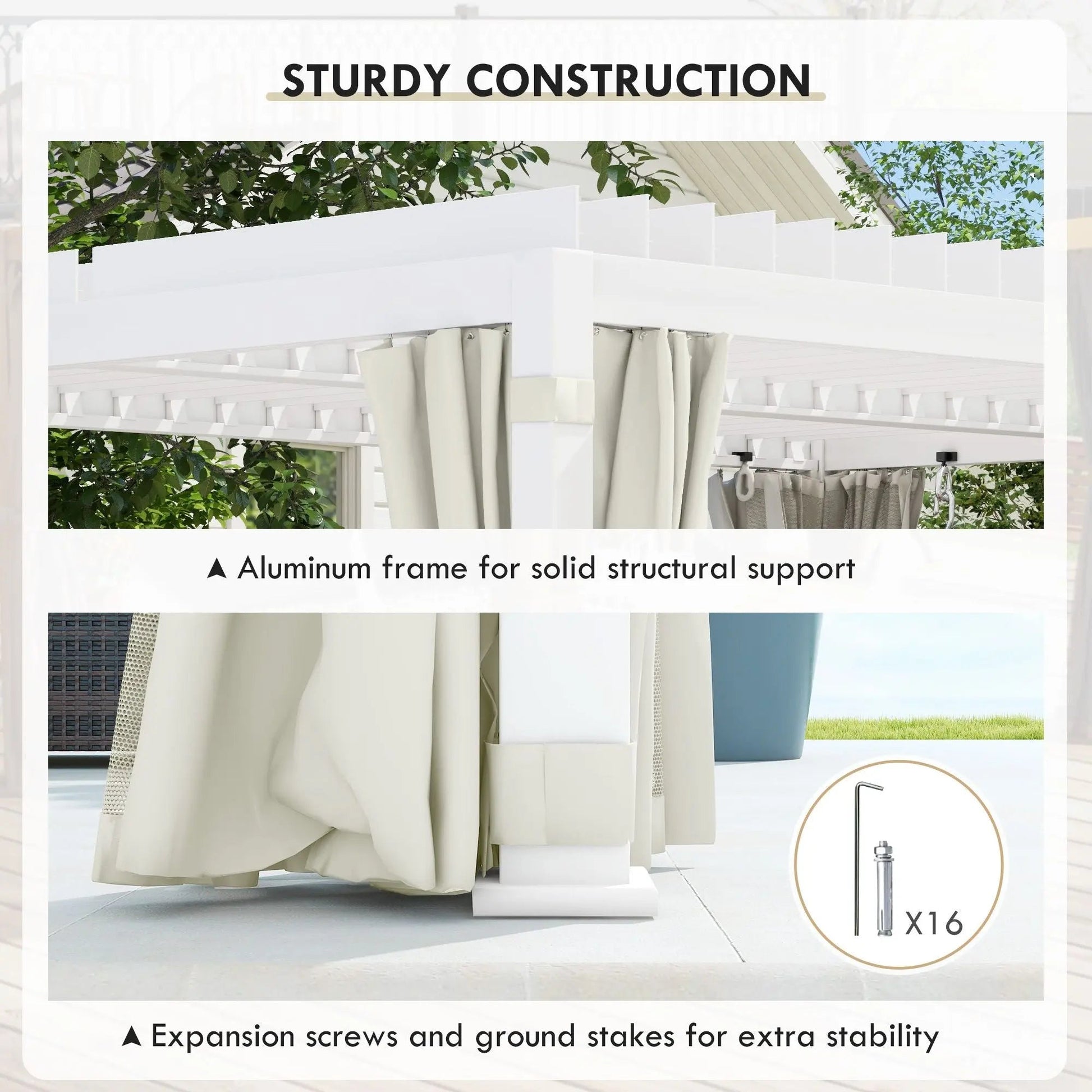 12' x 19' Aluminum Pergola, 2 Adjustable Louvred Roofs, Curtains & Nettings, UV-Fighting & Waterproof, DOBA-PC1219