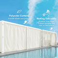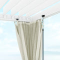 DOBA-PC1219 provides adjustable sun and shade with its 0–90° independent louvre roof system. Perfect for gardens, patios, or outdoor entertainment areas, it includes curtains for privacy and netting for protection from insects. Made from rustproof, waterproof aluminum, it features a hidden drainage system and comes with ground stakes and expansion screws for easy installation.