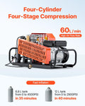 4500 PSI (30 MPa) PCP Air Compressor, 60 L/min Four-Cylinder, Auto Stop with Fan Cooling System, for Scuba Tanks & Paintball, DOBA-PCP4500