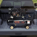 Equipped with a durable cast-iron piston pump and frame, the TMG-AC21G ensures long-term resistance to wear and deformation. Dual quick-connect outlets allow two air tools to operate simultaneously, reducing downtime and keeping projects moving. Mobility is effortless thanks to four smooth-rolling wheels and a convenient push handle, so you can transport the compressor across gravel, concrete, or uneven terrain. An automatic low-oil shutdown protects the pump from damage, while EPA certification guarantees reduced emissions and efficient fuel usage. The 21 gallon tank’s large capacity minimizes frequent starts and stops, ensuring steady performance from start to finish.