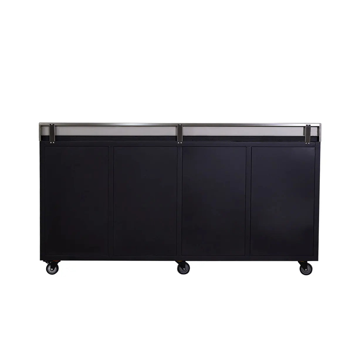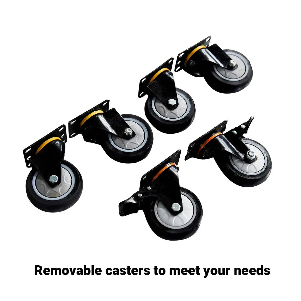 Its all-steel welded frame and 1.5mm stainless steel work surface offer industrial-grade strength, while the 4" back lip ensures a tidy workspace. With a mix of skinny, medium, wide, and large drawers rated for up to 400 lbs, you'll have tailored storage space for your every need.