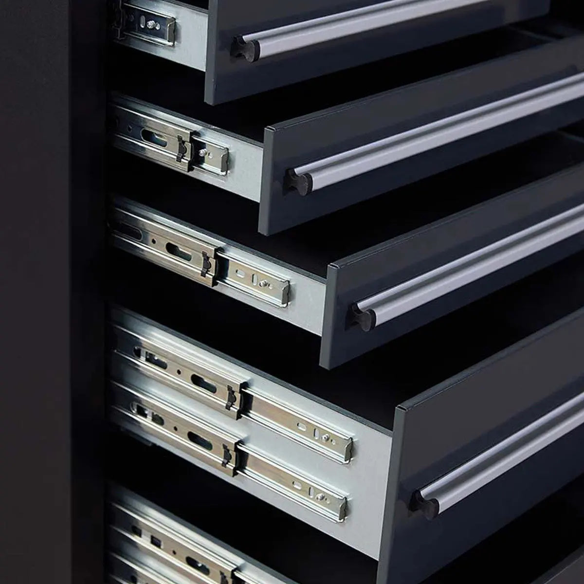 Powder-coated for extra durability and equipped with smooth-gliding ball bearing rails, this workbench is designed for professionals who value quality, function, and mobility. Built for professionals who demand strength and reliability, this workbench is perfect for garages, workshops, and industrial spaces.