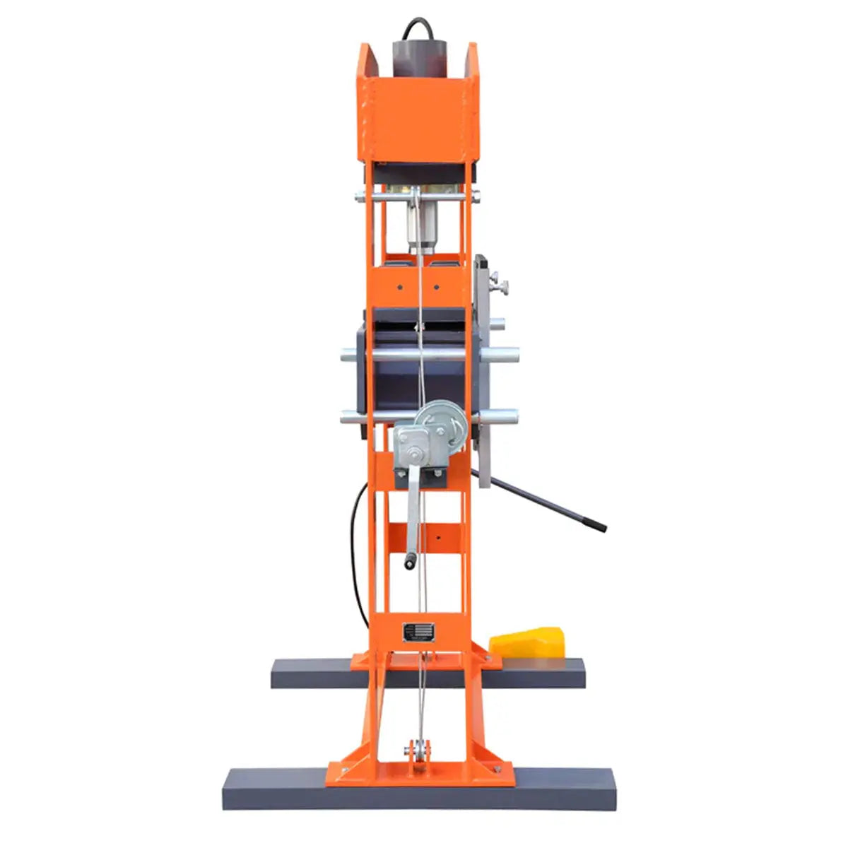 A dual operating hydraulic cylinder works pneumatically or manually for total operator control, steady ram speed and smooth overall workflow. The steel cable crank winch provides ergonomic relief, eliminating excessive bending and allowing you to easily adjust the pressing bed up and down. Seven height positions also offer superior workpiece flexibility that will adapt to your specific work setting and requirements.