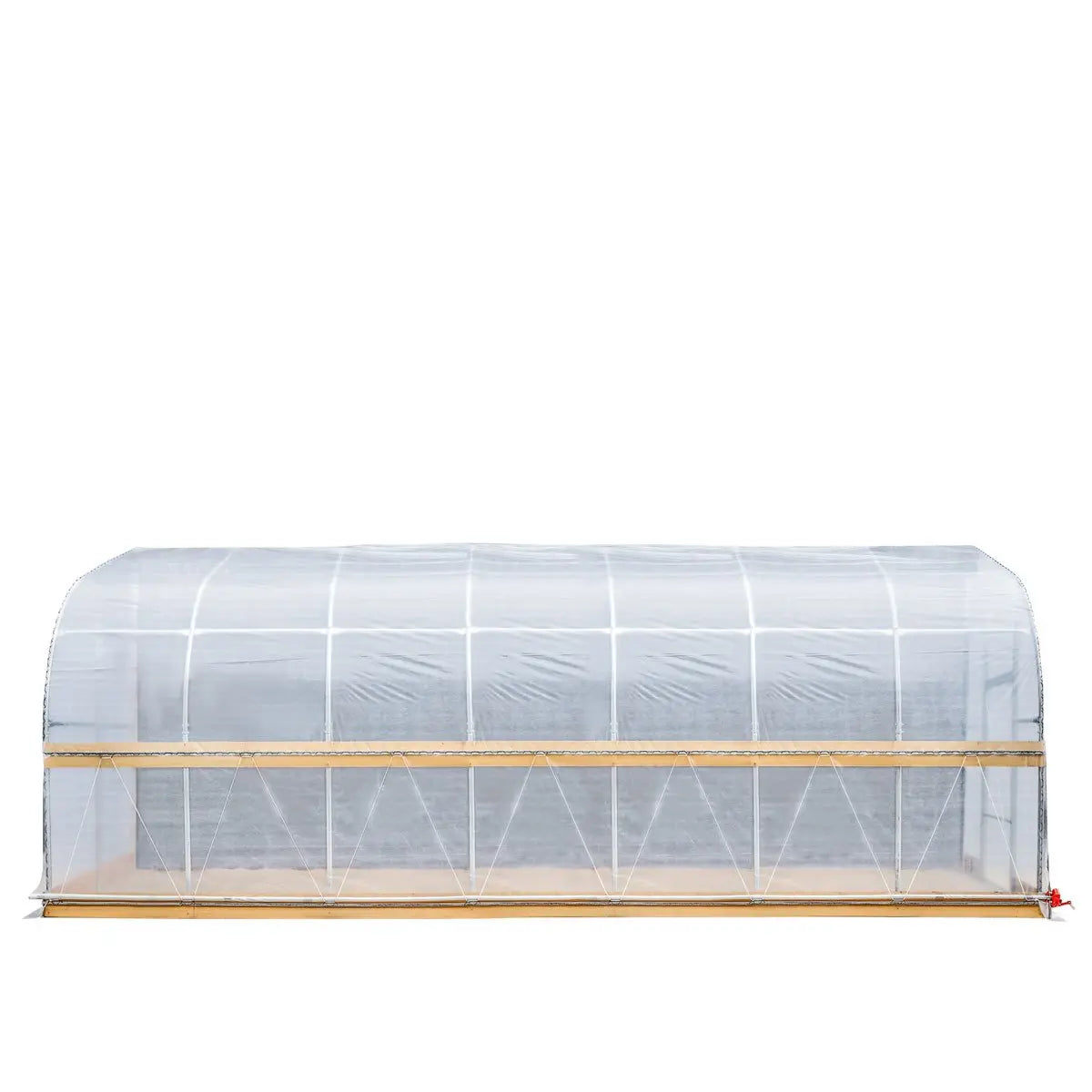 Included wiggle wires make securing the plastic film overtop of the frame and into the aluminum lock channels simple and easy to do. Your plants will have plenty of room to grow and flourish under the approximately 300 sq-ft of covered space. Solar energy will seep through from all angles and be stored in the soil and inside the structure for a beautiful, budding ecosystem.