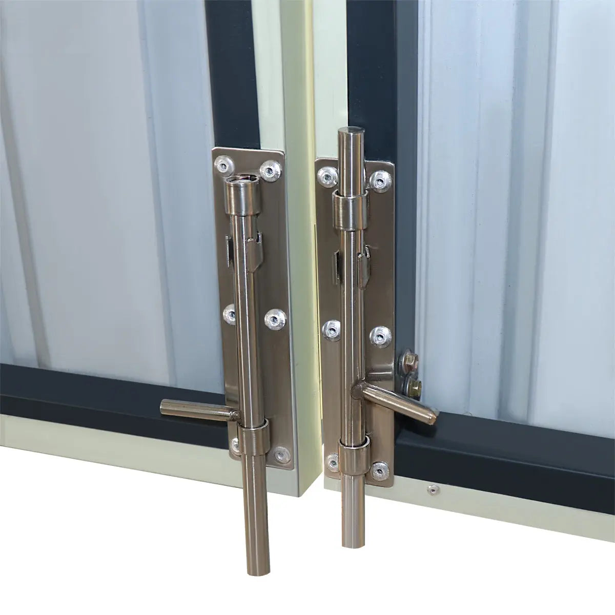 A sloped gable roof design prevents snow and water build up on those cloudy winter days. Slip-fit base frame with sleeve anchor bolts installation makes this structure easy to install on any solid wood platform or concrete slab. Immediately increase the value of your property by adding to it this metal shed which is only a fraction of the cost compared to building a similarly sized structure.