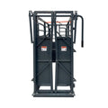 Upper and lower side openings swing open to allow immediate access to different sizes of cattle and varying parts of the torso, neck, legs and feet. Checking for disease, treating cuts and sores, administering vaccines and other medicine can all be done safely while the cow is restrained inside.