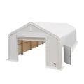 Roughly 12' wide winch roll-up doors on both endwalls provide a huge opening to allow workflow coming in and out. The steel man door provides a convenient, houselike entry that is more secure than standard fabric cut out openings. Our PVC fabric comes in a vibrant white colour that reflects UV rays but allows light to permeate through. This natural illuminating quality will help you save on utility costs and provide all day use even when it's cloudy.