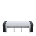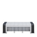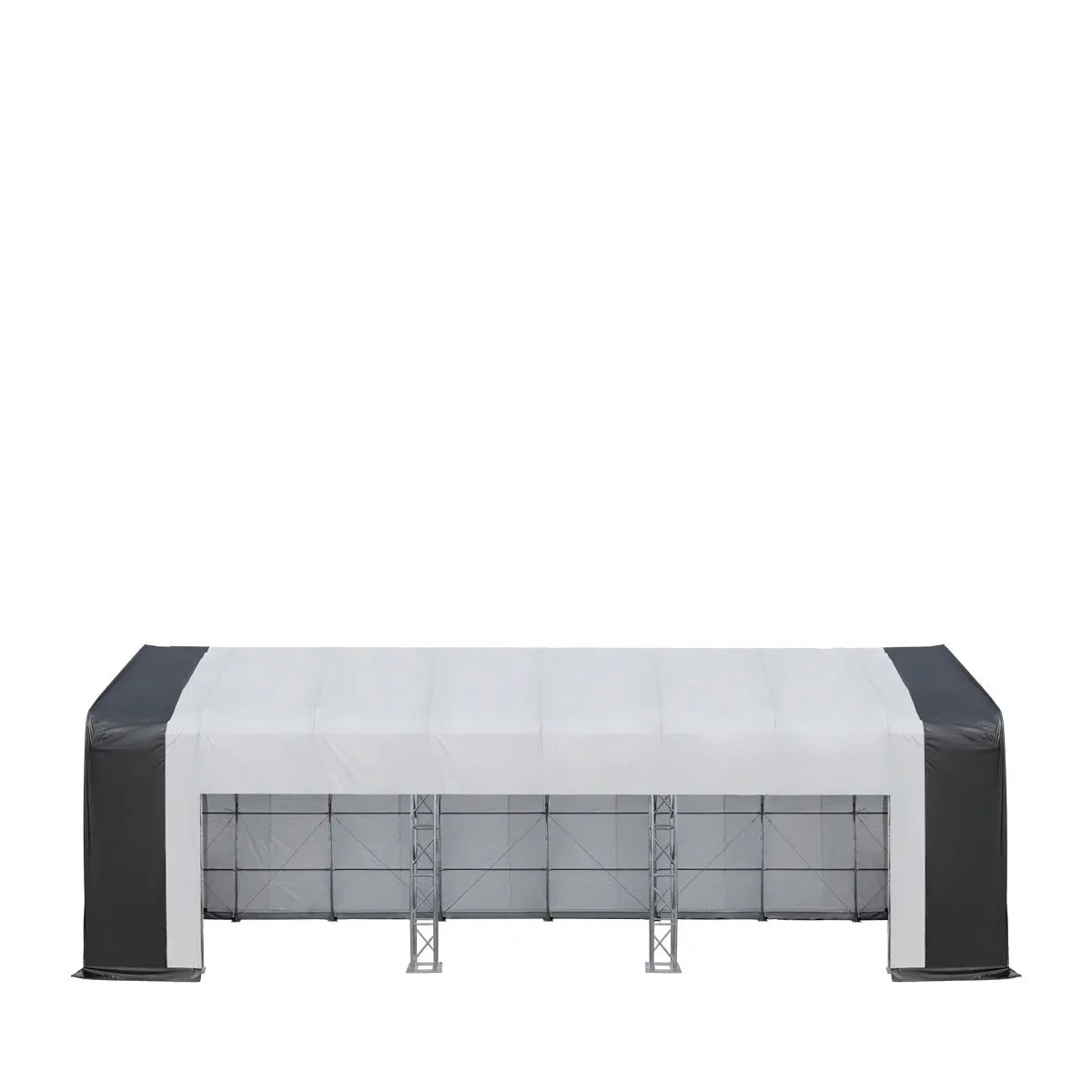 The commercial grade 21oz PVC cover, colored in a clean white with grey trims, offers superior protection against tearing, leaking, and chemical corrosion. The shelter is fire-retardant, UV-protected, and waterproof, guaranteeing a dry and organized space.