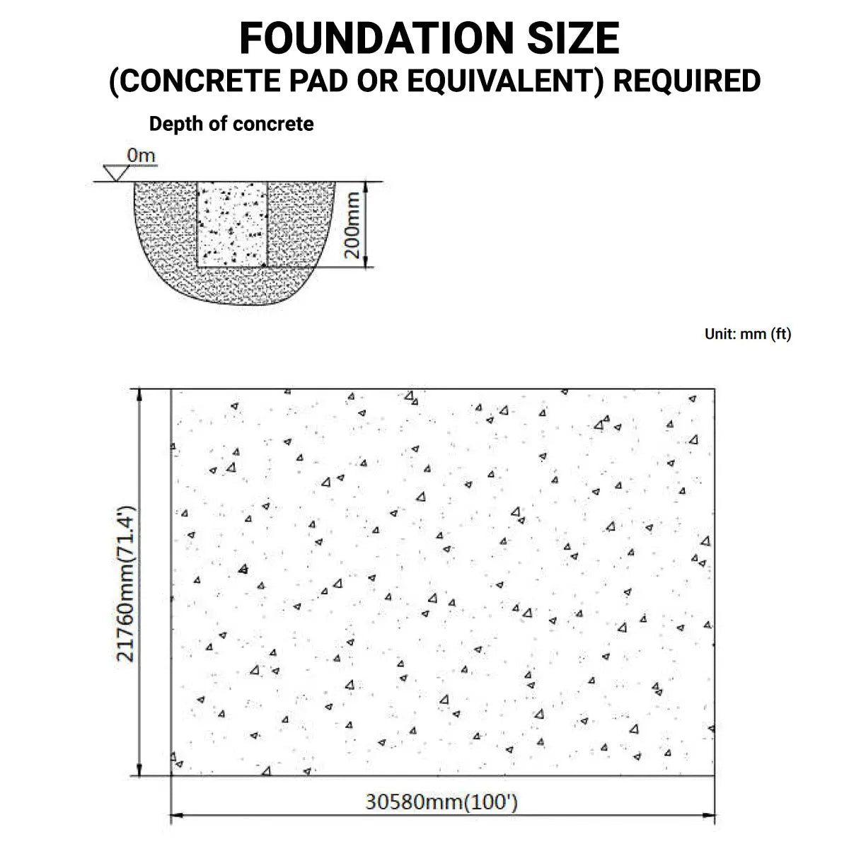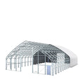 The TMG-DT70100-PRO PVC Fabric Peak Ceiling Storage Shelter provides an easy to assemble, durable outdoor storage solution or workshop for your farm, construction site, equipment dealership and more. Approximately 7000 square feet of covered space to stockpile materials, work on projects, park vehicles and accommodate all other needs big or small. Able to install on any concrete pad or equivalent for versatile useability whether you're working in remote, rural or industrial locations.