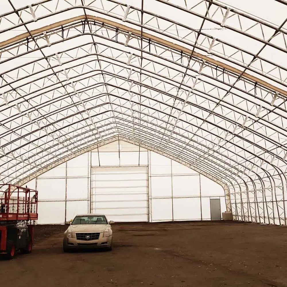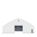 Roughly 18' wide mechanic roll up doors on both endwalls provide a huge opening to allow workflow coming in and out. The steel man doors provide a convenient, houselike entry that is more secure than standard fabric cut out openings. Our PVC fabric comes in a vibrant white colour that reflects UV rays but allows light to permeate through. This natural illuminating quality will help you save on utility costs and provide all day use even when it's cloudy.