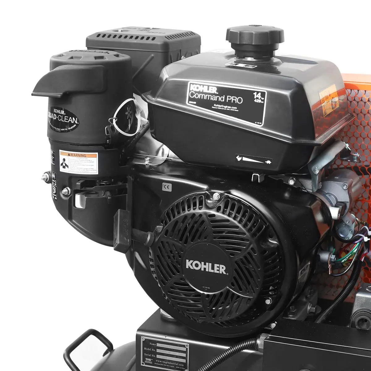 The TMG-GAC60 2-Stage 60 Gallon Air Compressor has a variety of applications across different trades and industries. Forklift slots make this compressor ready for mounting onto your truck or flatbed for versatile mobility and limitless overall utility. Powered by a reliable, commercial grade Kohler 14 HP Command Pro Series gasoline engine that delivers 18.5 CFM at 175 PSI for superior air compression and performance.