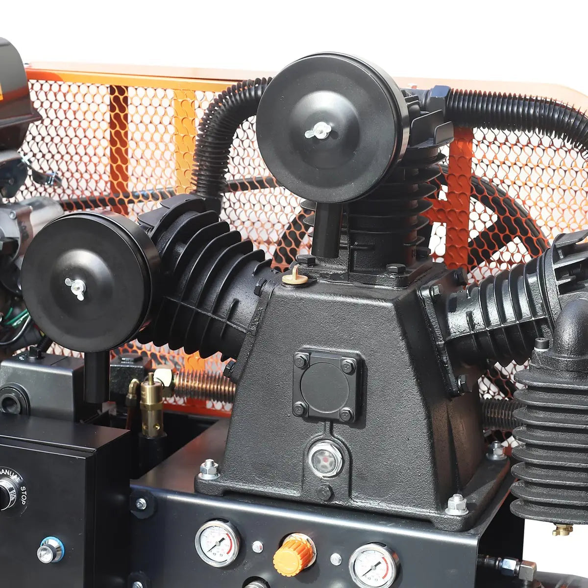 A belt-driven, cast iron two-stage pump produces heavy-duty air pressure that can handle multiple tools at a time and extended use over long, hard days of work. Perfect for roofing, framing, tire, equipment and utility servicing. Place directly onto your work truck and bring the air compression power with you wherever you go.