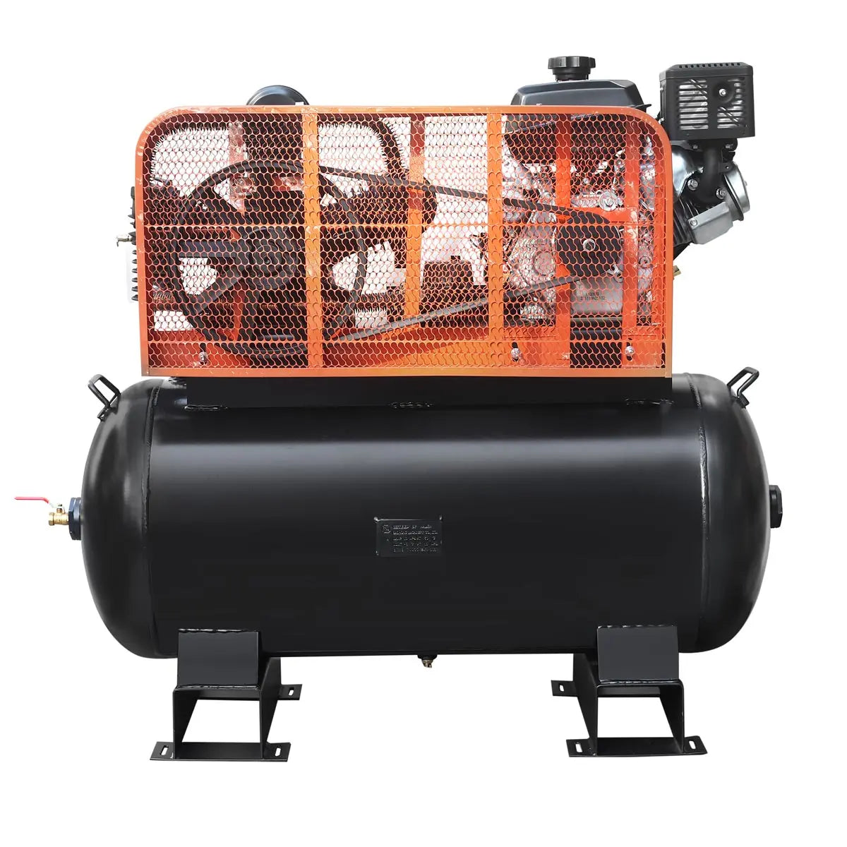 ASME certified horizontal tank, pressure release valve and liquid filled pressure gauges provide safe, accurate pressurized workflow and operation. Steel braided hoses, large cooling fins and NPT fittings ensure efficient air transfer from the compressor to your tools and give you an energy source you can depend on for many years to come.