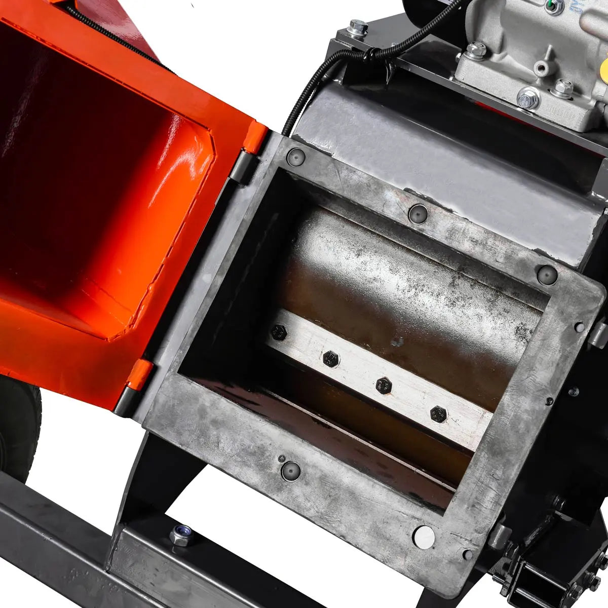Gravity fed sloped chute guides tree limbs, branches and any other yard waste to be processed in no time at all. The hinged hopper allows for easy drum access and maintenance while the adjustable discharge lets you accurately dispose of processed product. Simply hook up the 2" hitch to your truck or four wheeler for easy transport around the property and productive workflow.