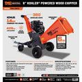 6" Wood Chipper Powered by Kohler 14 HP Command Pro Series, ATV Tow-Behind, 12'' Reversible Blade, Dual Belt Drive, TMG-GWC6