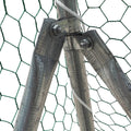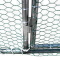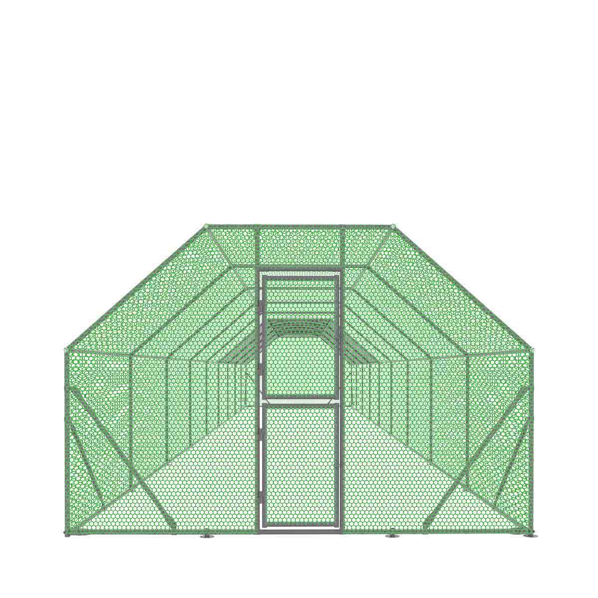 Roughly 600 sq-ft of space is covered by a heavy-duty galvanized steel frame that is also powder-coated for maximum protection against rust, corrosion and wear. PVC coated hexagonal wire mesh keeps your chickens in and predators such as hawks, coyotes, dogs and cats out so you can get the most out of their long, healthy lifespans.