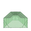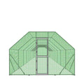 A weather-resistant polyethylene (PE) tarp covers one side of the enclosure to provide shade and rain protection. The spacious design gives occupants plenty of room to run, jump, perch and mingle amongst each other. Sturdy and secure lockable steel gate provides easy in/out access, and the quick put-together, slip-fit tube connections with pre-drilled footplates are easy to assemble and will have this coop up and operating in no time.