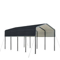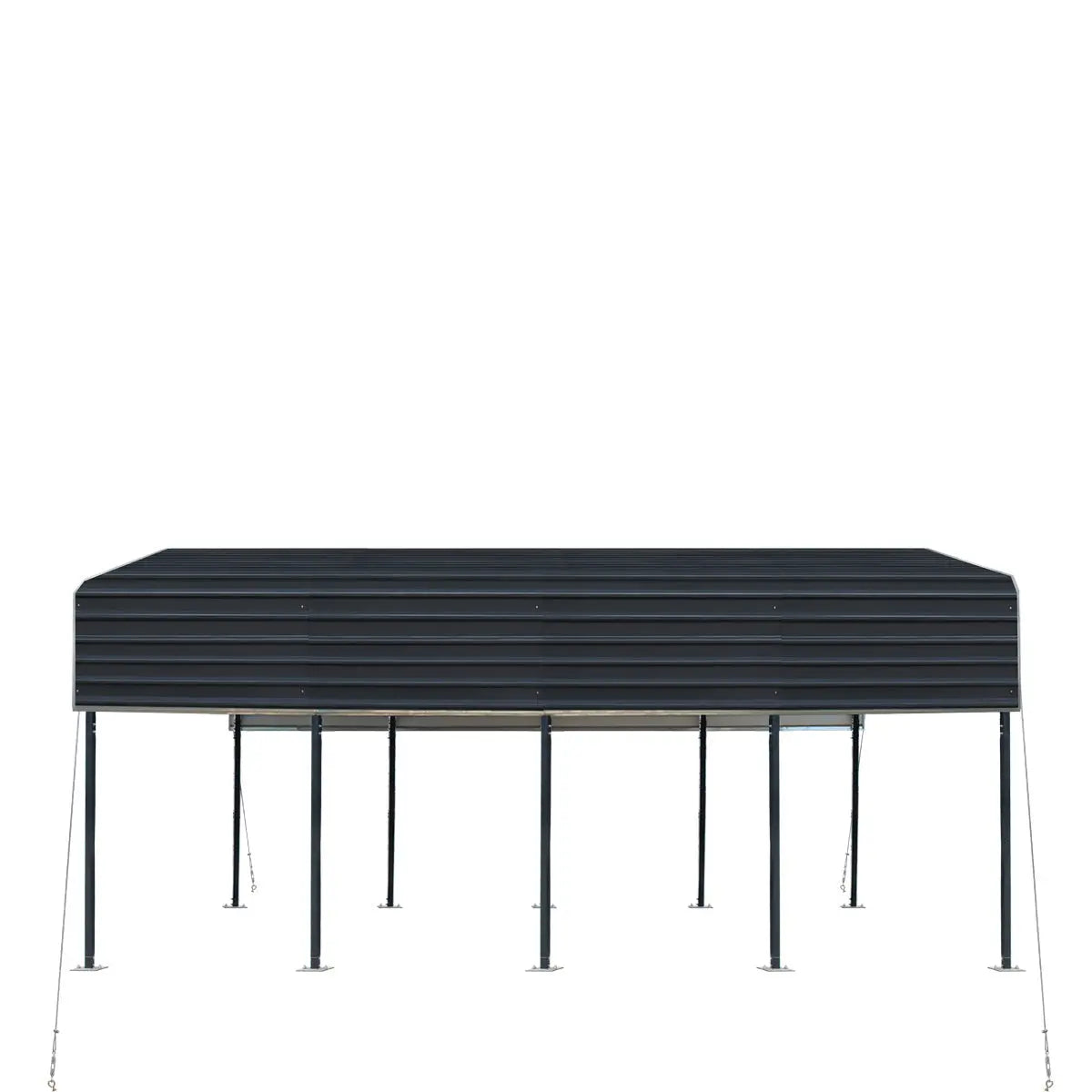 Heavy gauge galvanized metal with a powder coated finish protect this carport from the elements and make it highly resistant to rust, wear and corrosion. Robust metal roof and side panels have a surface polyester paint coating that provides another layer of protection which increases the lifespan and aesthetic quality. The vertical roof panels navigate moisture and help prevent snow buildup during the winter which decreases overall stress on the structure.