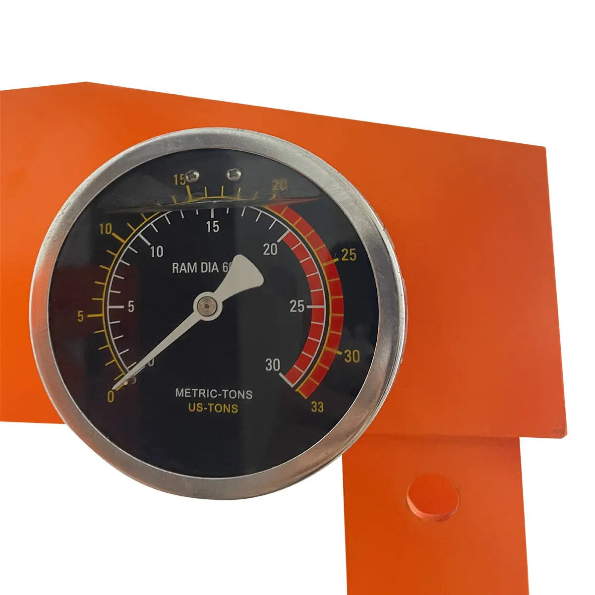 The oil filled pressure gauge can be read in US and metric tons, and allows you to accurately monitor your pressing force while operating. Made to handle tough jobs like gear and bushing removal. Ships free from our warehouses in Richmond, BC and Mississauga, ON with a one year manufacturer warranty.