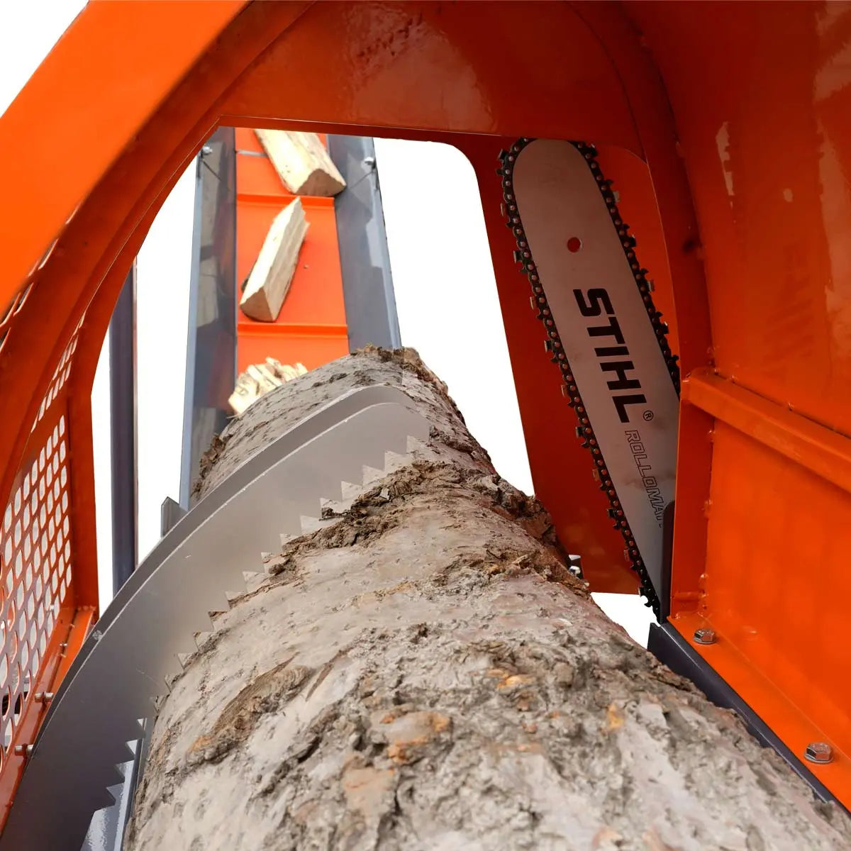 Equipped with a hydraulic-driven bar 18" chainsaw bar that works effortlessly to cut through logs up to 15" in diameter. With a splitting force of up to 20 tons and a maximum splitting length of 24", this firewood processor can meet your every need. Also featuring an innovative 2-4 way splitter that allows you to accommodate raw timber of varying sizes, and produce finished logs 2 or 4 at a time.