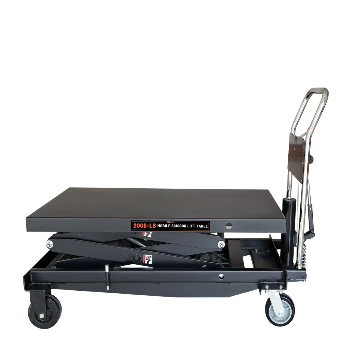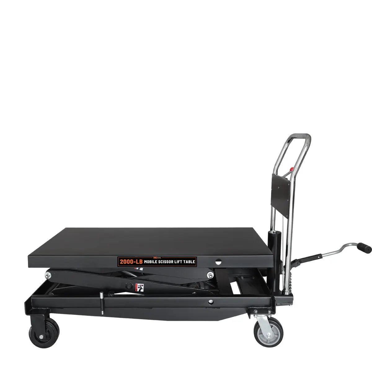 A foot pedal allows you to operate the hydraulic tabletop with ease, and lowers the risk of injury by eliminating the need to bend down and manually adjust objects. Simply pump the table up to your desired height, and use the conveniently located handle-mounted pressure release to have total control over the descending speed.