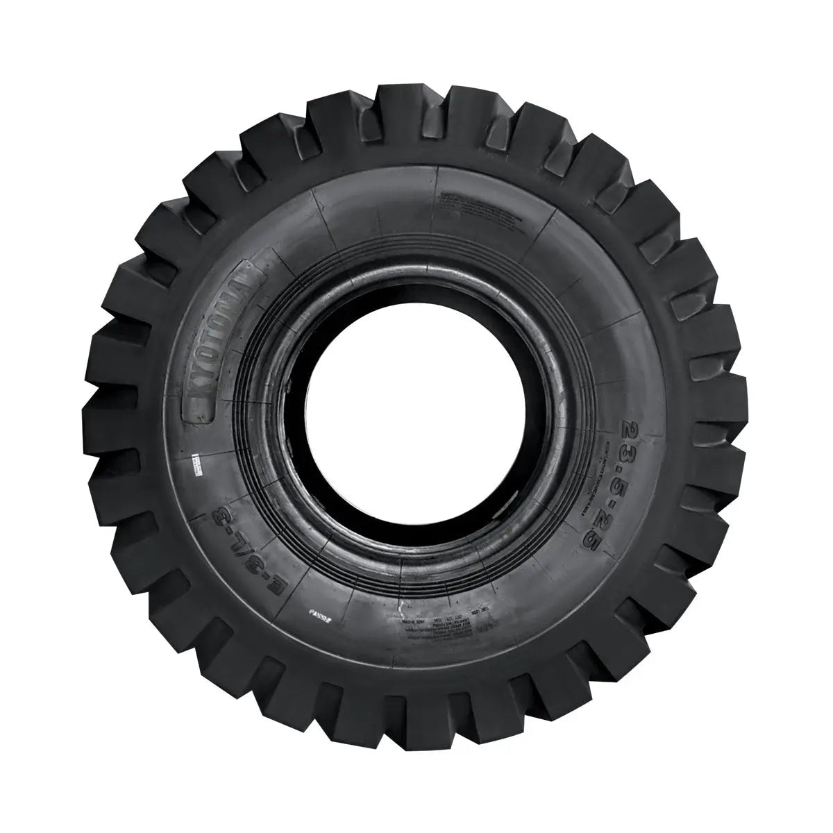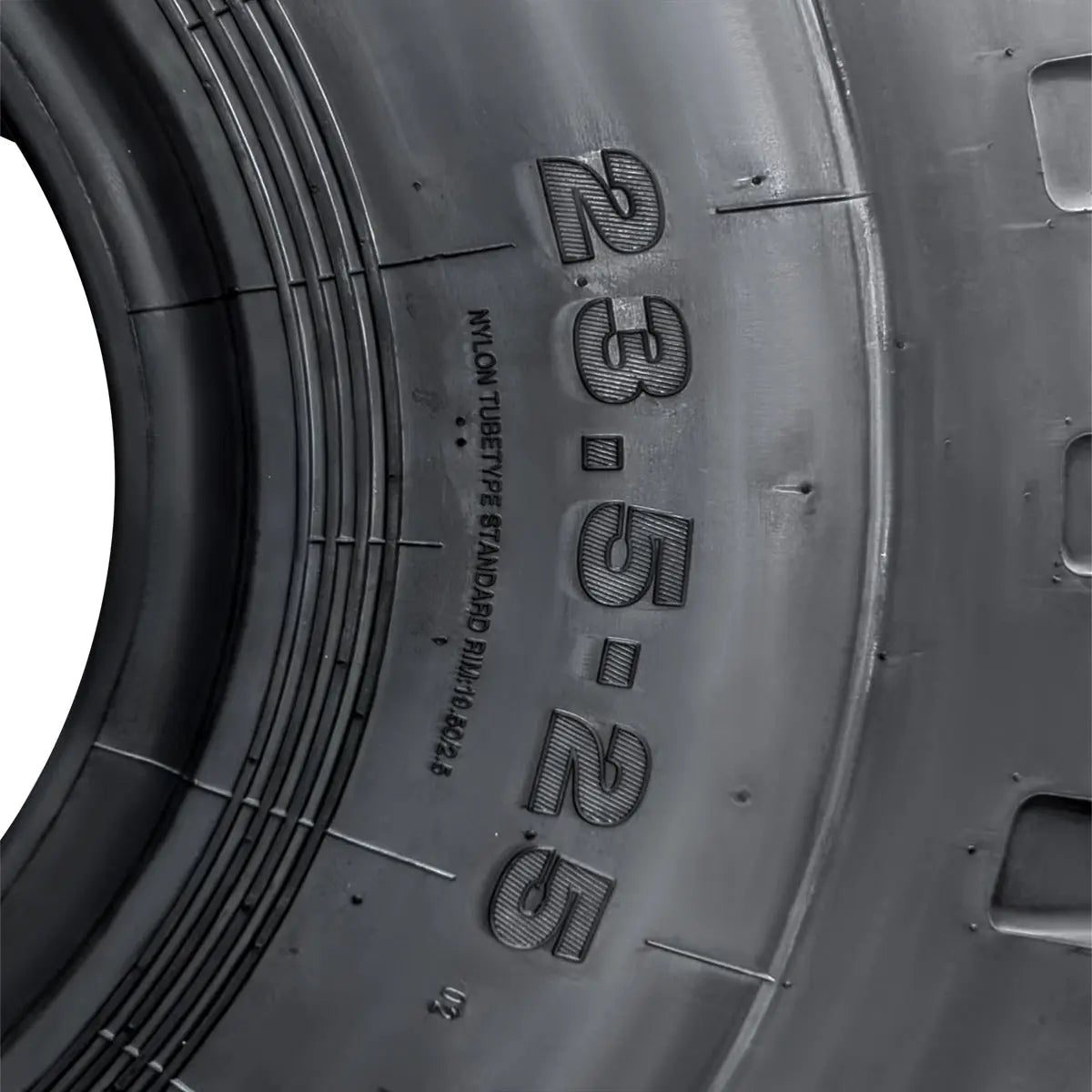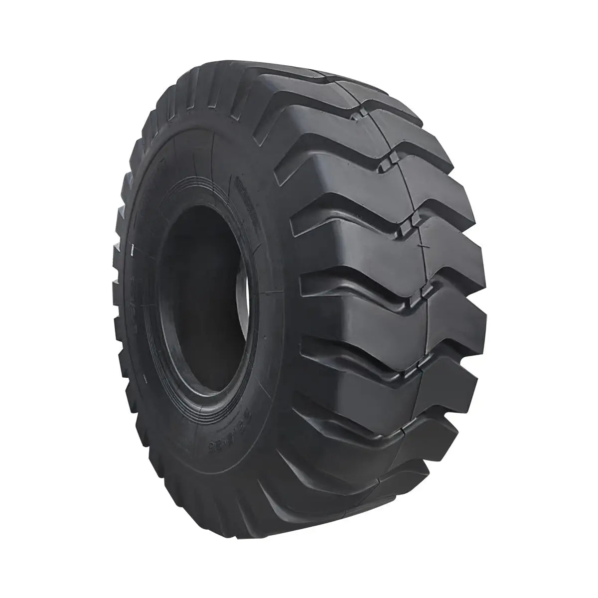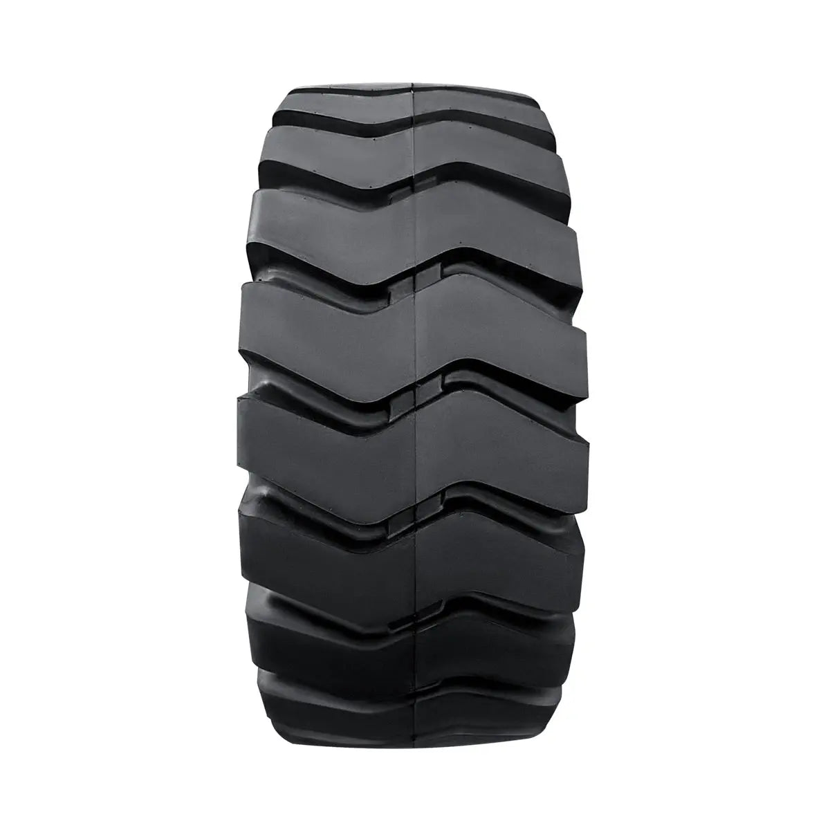 The tire's wide pattern block design enhances wear-resistance and shock-resistance, making it resilient against cuts, punctures, and high temperatures. Its specialized shoulder pattern expels mud efficiently, self-cleans, and prevents sideslip, catering to a range of operations including loading, digging, and bulldozing under diverse conditions.