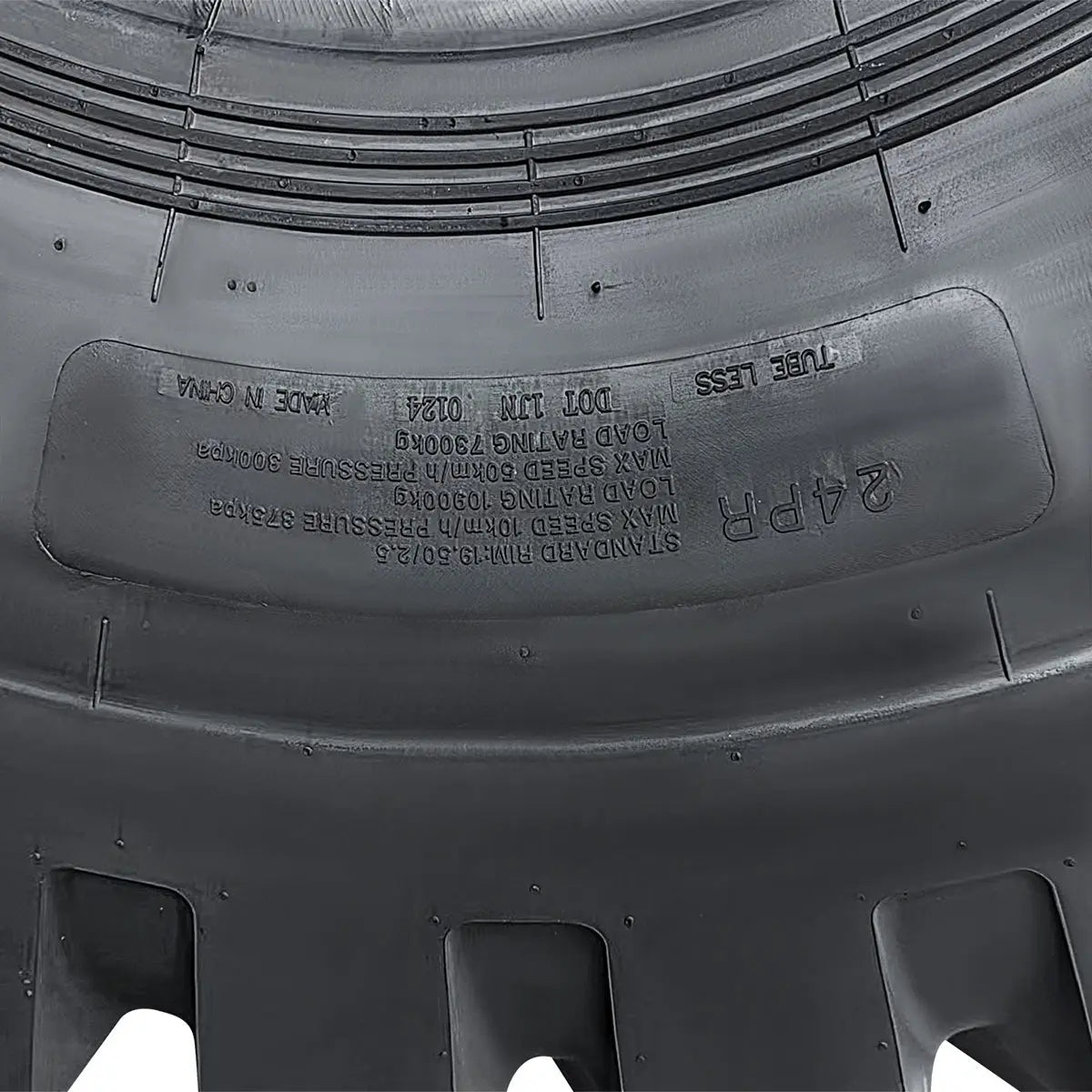 The TMG-TR235 24PR Wheel Loader Tire (E3/L3) is a powerhouse of durability and performance designed for heavy-duty operations. With a robust 24-ply rating and a pneumatic (air) tubeless design, this tire ensures a strong and reliable foundation for your equipment. Boasting an outer diameter of 64" and weighing 465 lb, each tire is engineered for optimal traction and stability. (SOLD IN PAIRS)