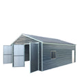 Our metal garage has reinforced roof supports, wall bracings and anchors making it a dependable structure for the housing of all your valuable goods. It's built to last and capable of accommodating your needs with approximately 780 sq ft of floor space. Fitted with electro-galvanized steel sheets and polyester paint that offer protective resistance against corrosion, rust and wear. Stockpile extra lumber, piping, motorized machinery and power tools; anything you need to help get the job done.
