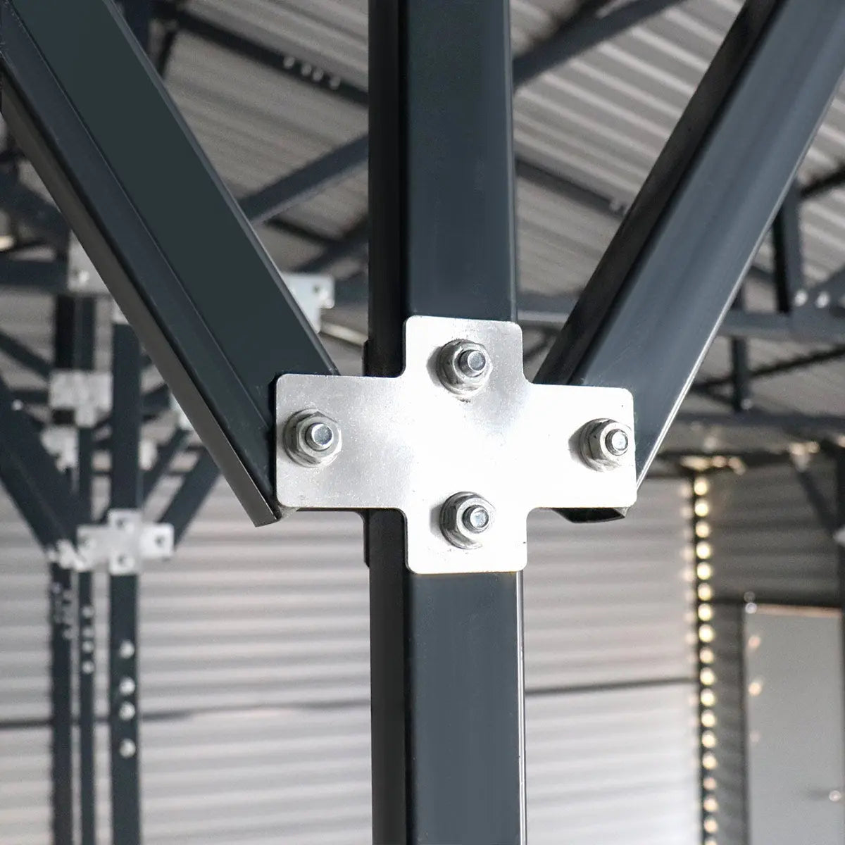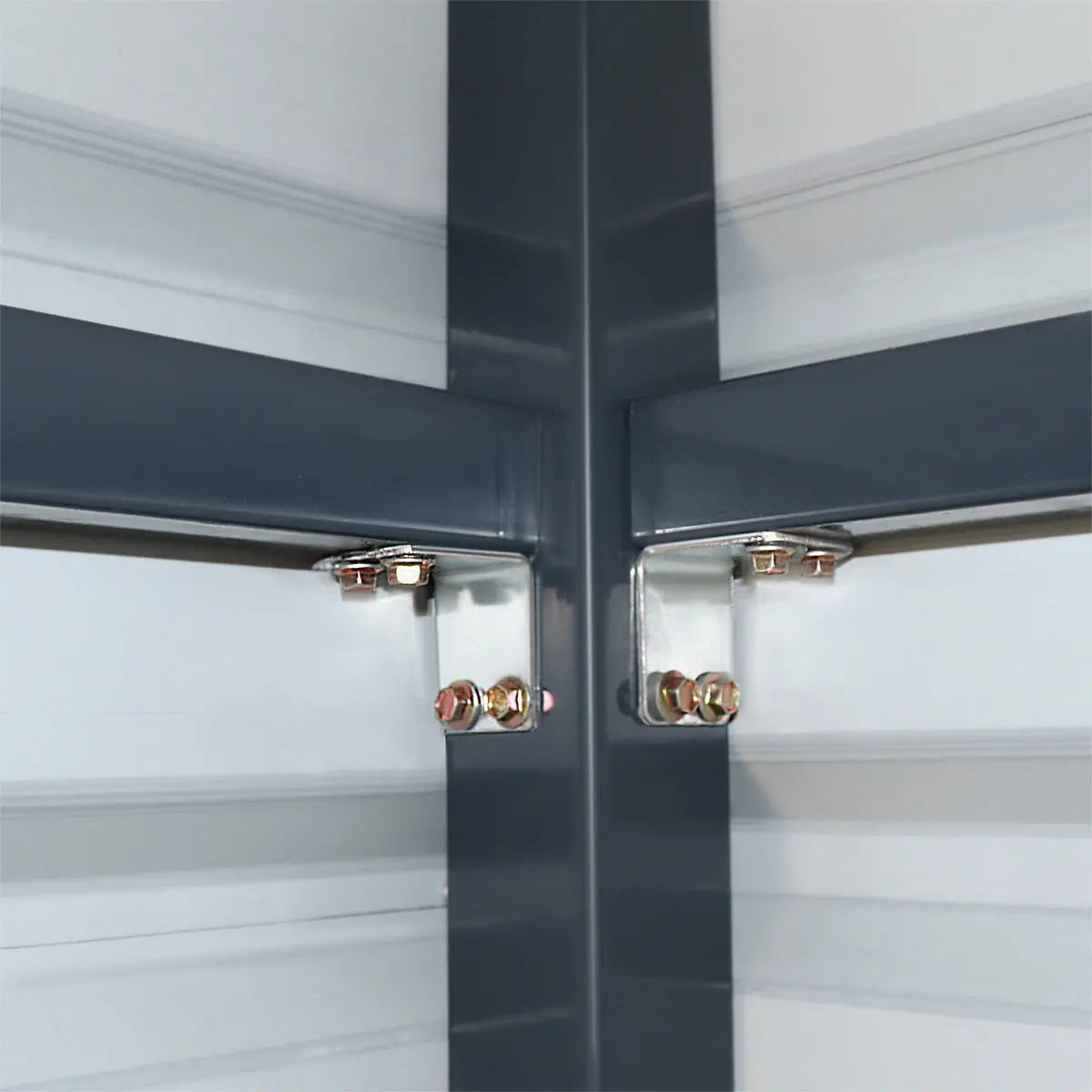 A sloped gable roof to help prevent snow and water build up on those cloudy winter days. Slip-fit base frame with sleeve anchor bolts installation makes this structure easy to install on any solid wood platform or concrete slab. Immediately increase the value of your property by adding to it this metal shed which is only a fraction of the cost compared to building a similarly sized structure.