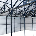 Our metal garage has reinforced roof supports, wall bracings and anchors making it a dependable structure for the housing of all your valuable goods. It's built to last and capable of accommodating your needs with approximately 1040 sq-ft of floor space. Fitted with electro-galvanized steel sheets and polyester paint that offer protective resistance against corrosion, rust and wear. Stockpile extra lumber, piping, motorized machinery and power tools; anything you need to help get the job done.